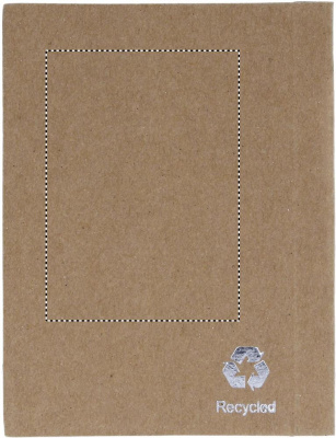 Pienikokoinen 80 sivuinen kierrätysmateriaalista valmistettu muistilehtiö, sisältää kuulakärkikynän sinisellä musteella.