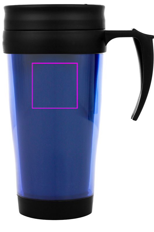 Kuuma vai kylmä? Tämä 0,4 litran kaksiseinämäinen muovikuppi liukuvalla reunuksella sopii kaikille matkoille ja pitää juomasi lämpimänä tai kylmänä. Sopii kaikkiin auton mukintelineisiin. Todella hieno metallinen hopea, sininen ja punainen kupit. Saatavana myös valkoisena, mikä sopii erinomaisesti moniväritulostukseen. Laitamme logosi kahvan vasemmalle puolelle. Jokainen kuppi on pakattu yhteen pahvilaatikkoon.