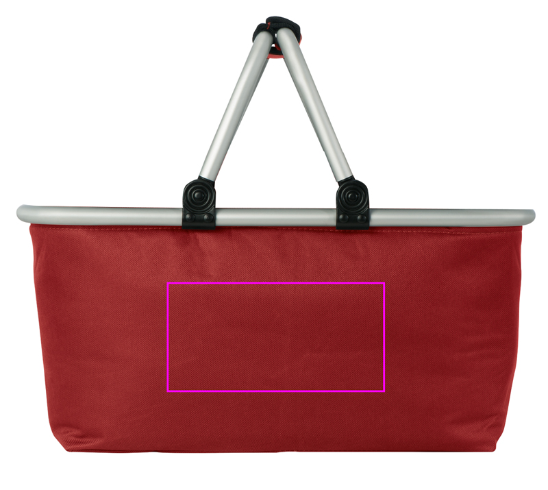 Ostoskori alumiinirungolla eri väreissä tekee ostoksista helppoa. Painamme logosi yhdelle puolelle,