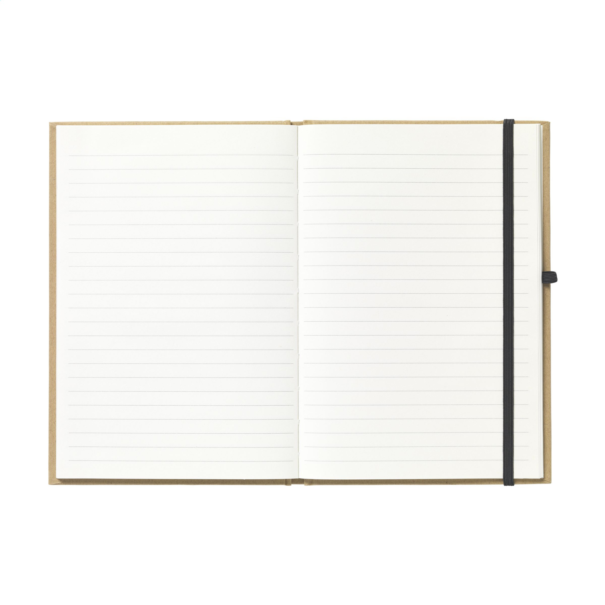 Kierrätysmateriaalista valmistettu A5-kokoinen muistikirja. Noin. 80 arkkia/160 sivua kermanväristä, vuorattua paperia (70 g/m²), kätevä kynälenkki ja joustava suljin.