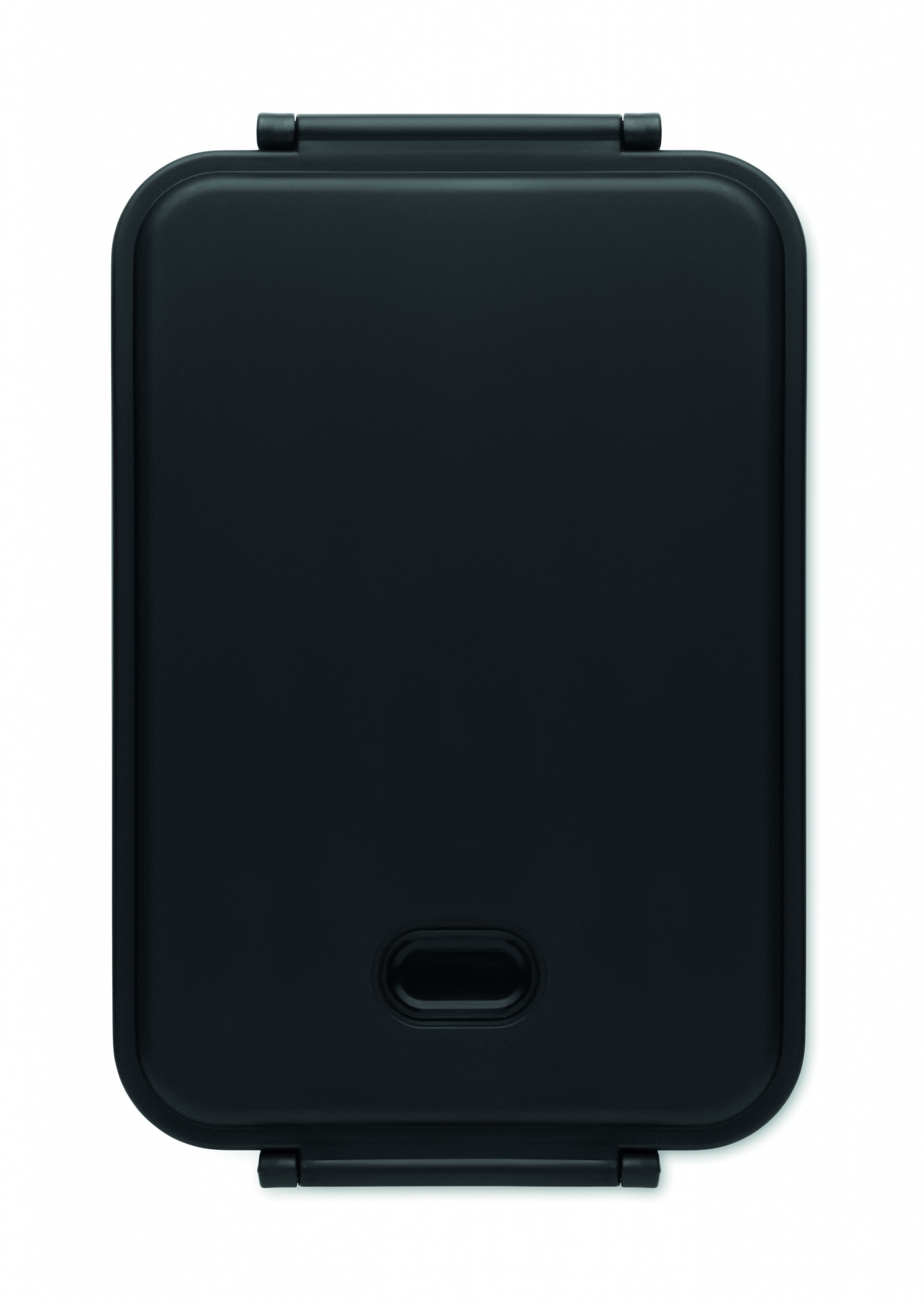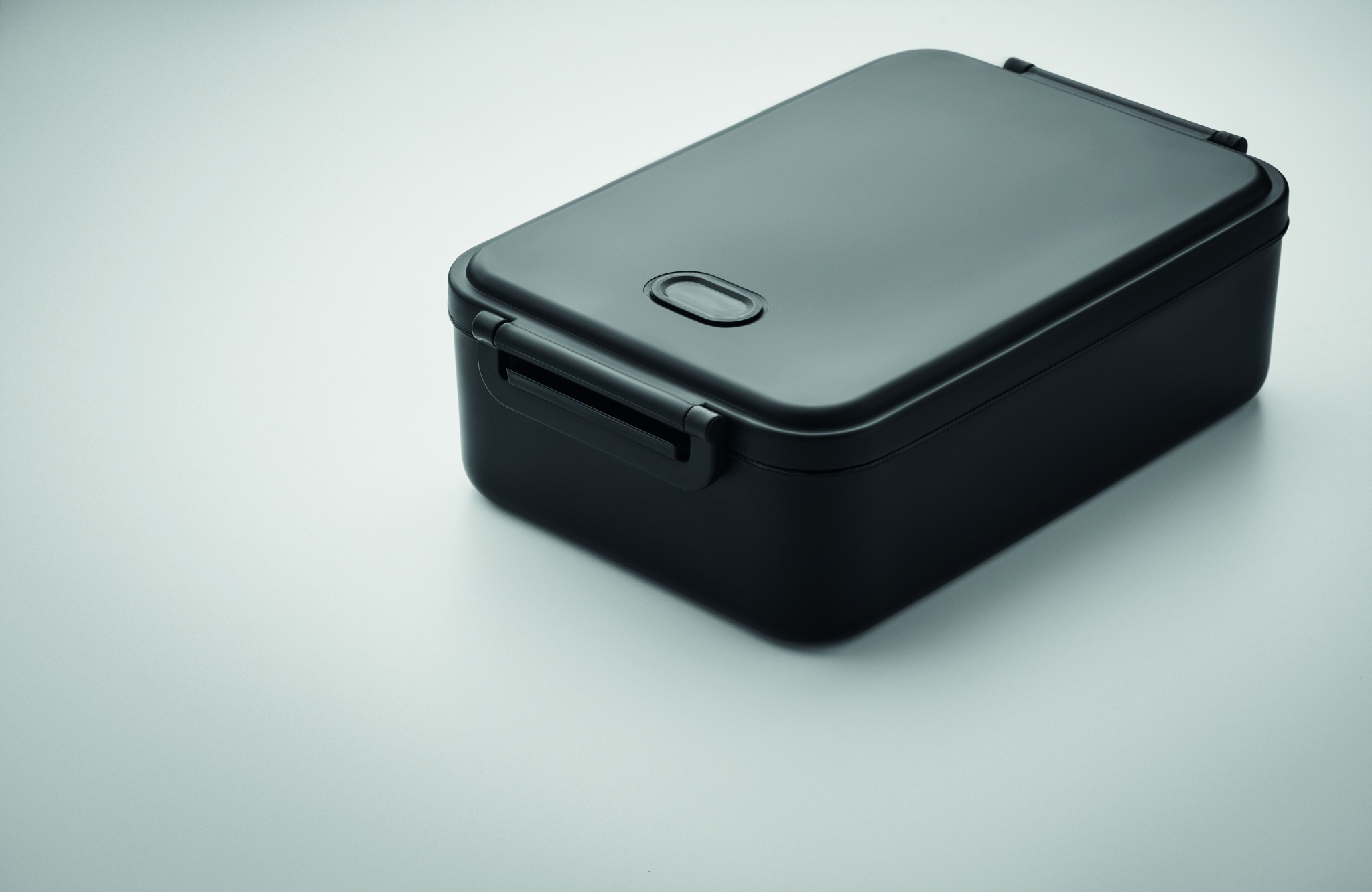 Suuri kierrätetystä PP-lounasrasia, jossa ilmatiivis kansi, silikoniventtiili ja kaksi sivusuljinta. Tilavuus: 2200 ml.