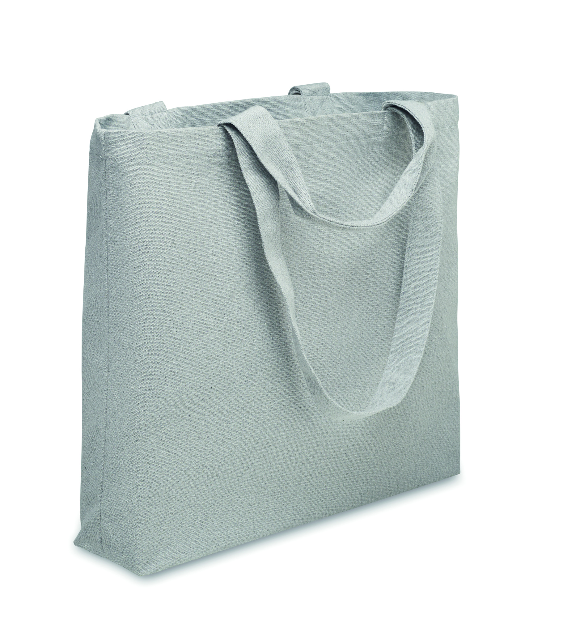 Ostos-/rantakassi kierrätetystä kankaasta (60 % kierrätettyä puuvillaa, 40 % kierrätettyä polyesteriä), jossa lyhyet ja pitkät kahvat. 320 g/m².