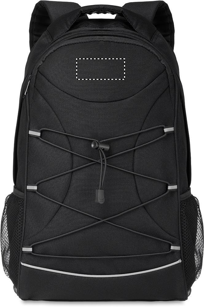 600D RPET- reppu heijastavalla etupaneelilla ja verkkotaskut molemmin puolin.