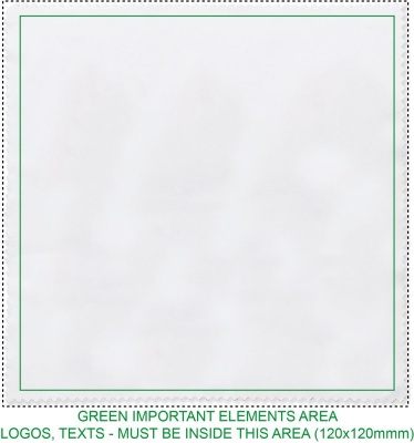 RPET puhdistusliina näyttöjen puhdistamiseen, koko 13 x 13 cm. Sublimaatiopainatus vain valkoiseen tuotteeseen.
