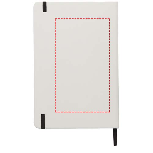 Valkoinen A5 muistikirja värillisellä joustavalla suljentanauhalla ja sivumerkillä. 80 sivua (60g/m2) viivoitettua paperia. Kansi voidaan digipainaa.