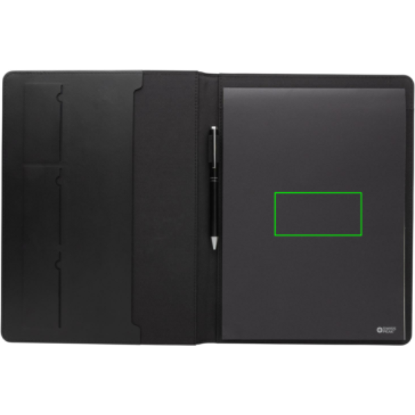 100% AWARE 300D -kierrätyspolyesteristä ja RCS-sertifioidusta kierrätetystä PU:sta valmistettu portfolio yhdistää tyylin ja vähäiset ympäristövaikutukset. Käyntikorttilokerot, kynälenkki ja tilava A4-tasku. Uudelleentäytettävä A4 muistikirja (20 sivua 70 g/m²), joka on valmistettu FSC®-mix kermanvärisestä paperista. Valitse tyylikäs vihko hyvällä omatunnolla. Valmistettu 100% kierrätetystä polyesteristä, johon on upotettu AWARE™-jäljitysainetta. Pakattu FSC®-lahjapakkaukseen.