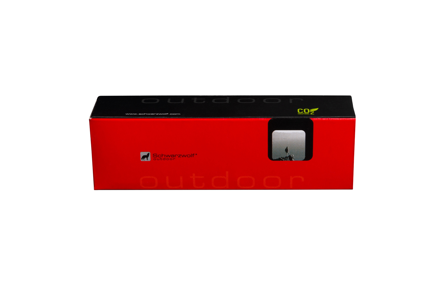 Monikäyttöinen Schwarzwolf taskuveitsi. Sisältää 9 työkalua – veitsi, sakset, saha, korkkiruuvi, pullonavaaja, tölkinavaaja, litteä ruuvimeisseli, ristipääruuvimeisseli ja karbiinihaka. Veitsen kahva on toiselta puolelta moderni uritettu ja toiselta puolelta sileä pinta logotulostusta varten.