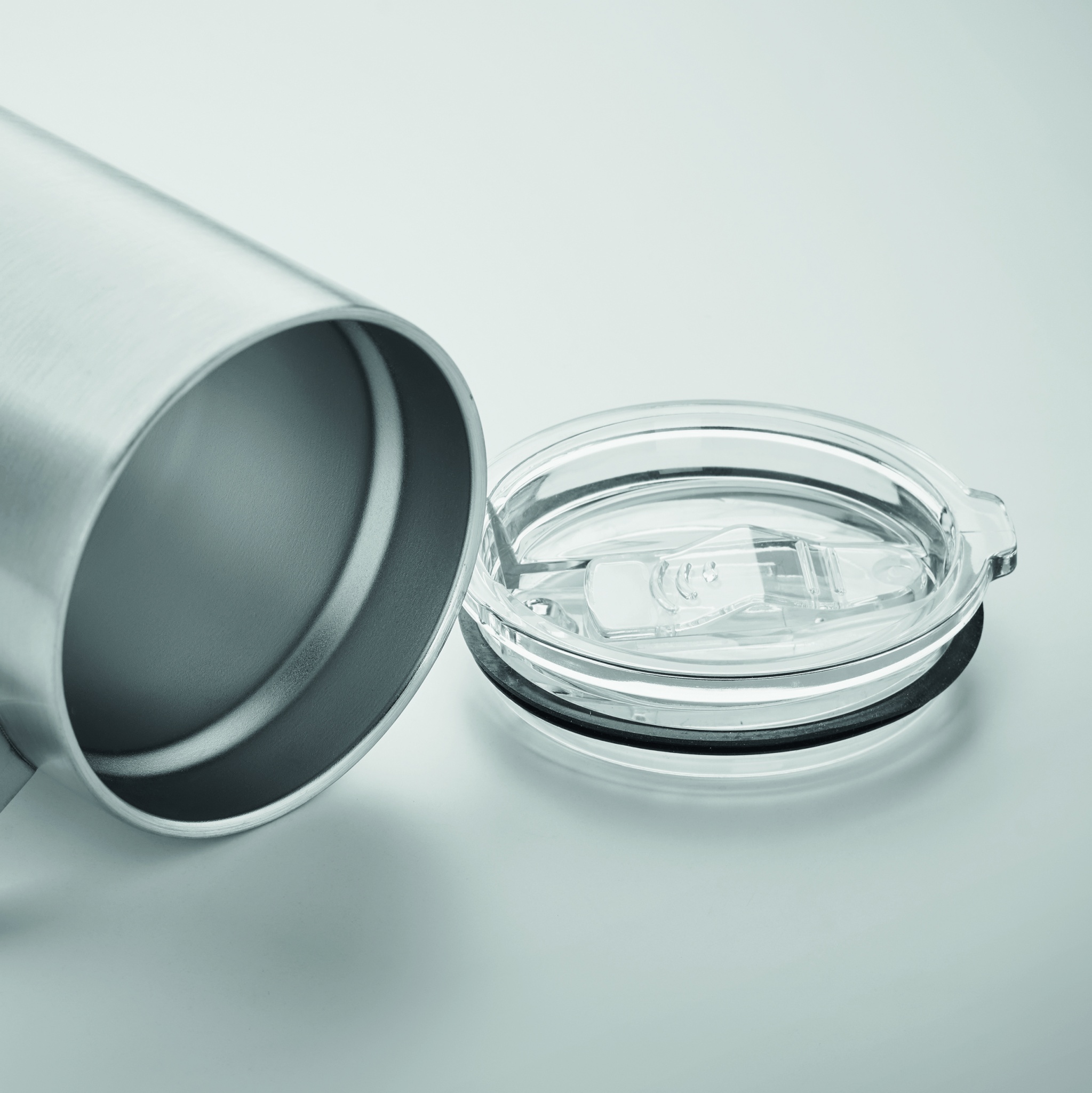Kaksiseinäinen kierrätetystä ruostumattomasta teräksestä (90 % kierrätettyä ruostumatonta terästä ja 10 % ruostumatonta terästä) valmistettu muki, jossa on liukuva juoma-aukon kansi. Tilavuus: 300 ml.