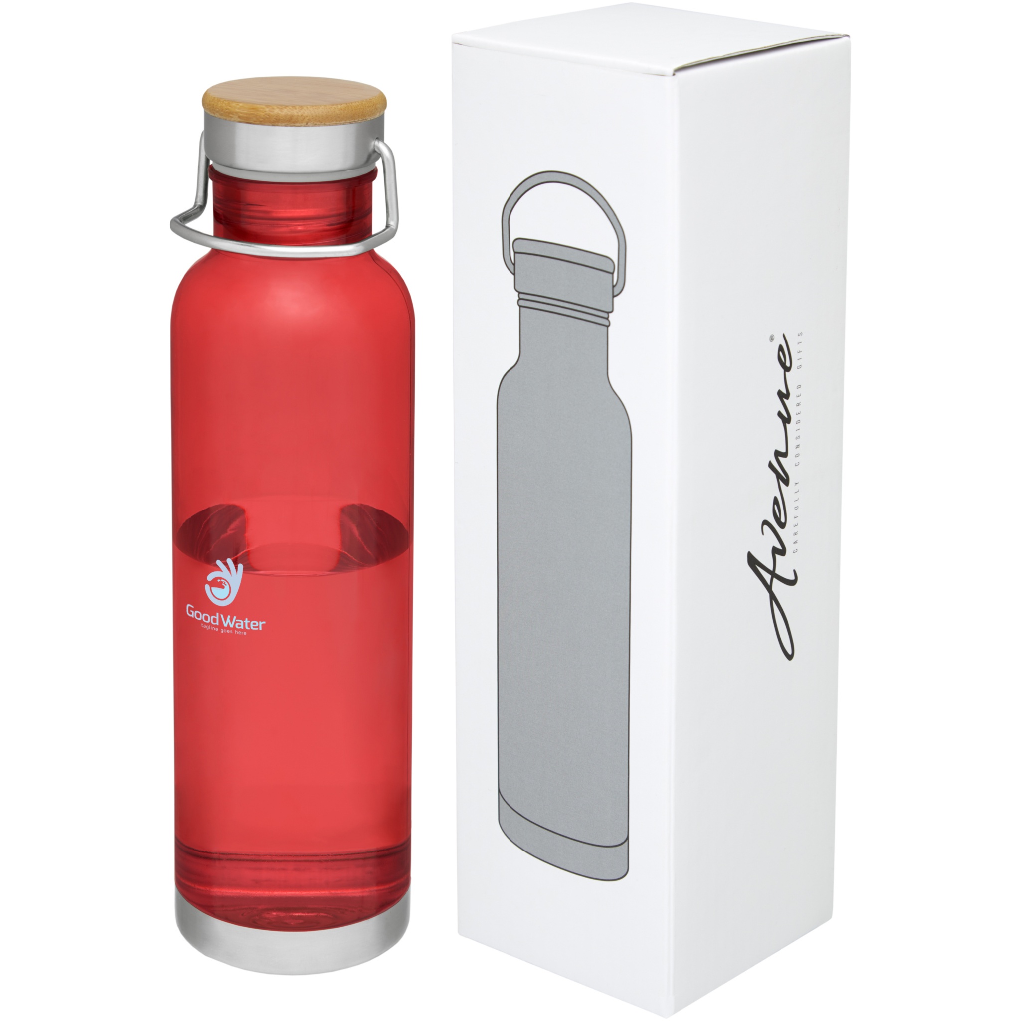 Yksiseinäinen juomapullo, kestävää Tritan™-materiaalia. Kestävä, estää tahroja ja hajuja. Kierrekannessa on bambu-yläosa ja kahva, joka helpottaa kuljettamista. BPA-vapaa. Tilavuus on 800 ml. Toimitetaan Avenue-lahjapakkauksessa.