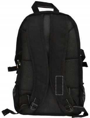 600D tietokonereppu rip-stop yksityiskohdilla, sisältää 15 tuuman kannettavan tietokoneen lokeron, vetoketjullisen etutaskun ja 2 sivulokeroa. Säädettävät olkahihnat.