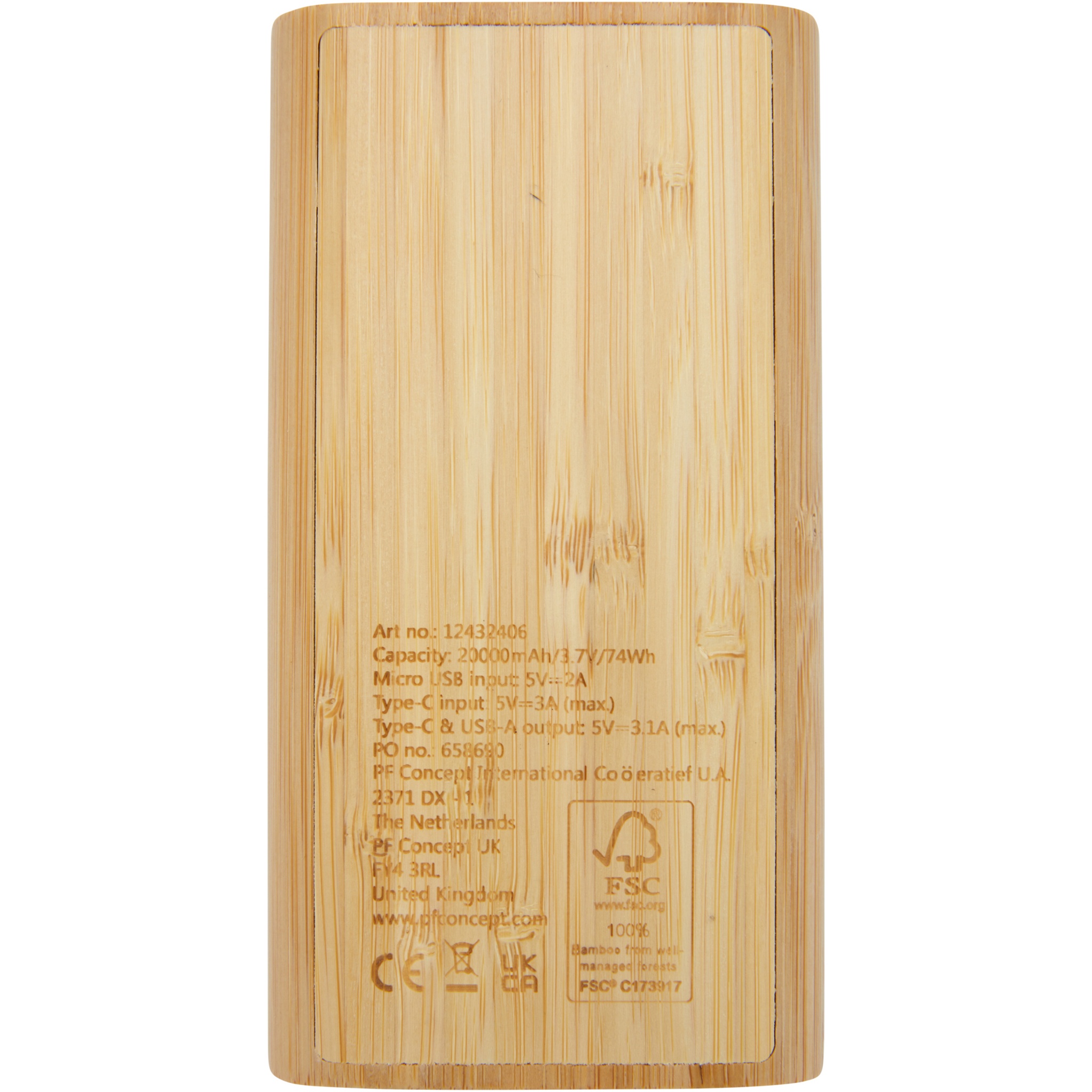 Logo trade liikelahja kuva: Tulda-varavirtalähde, 20,000 mAh, bambua