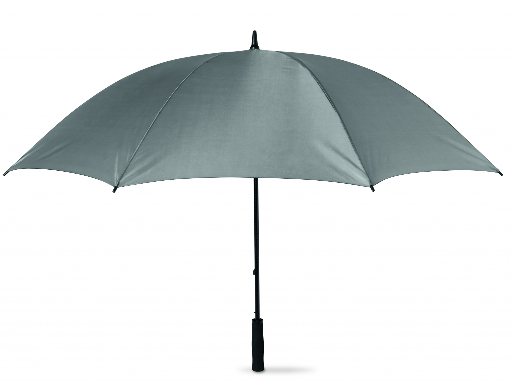 Manuaalinen 30 tuuman tuulenkestävä sateenvarjo 190T polyesteriä, lasikuituvarsi ja ruoteet. Mustat muovikärjet, yläosa ja suora kahva, manuaalinen suljin.