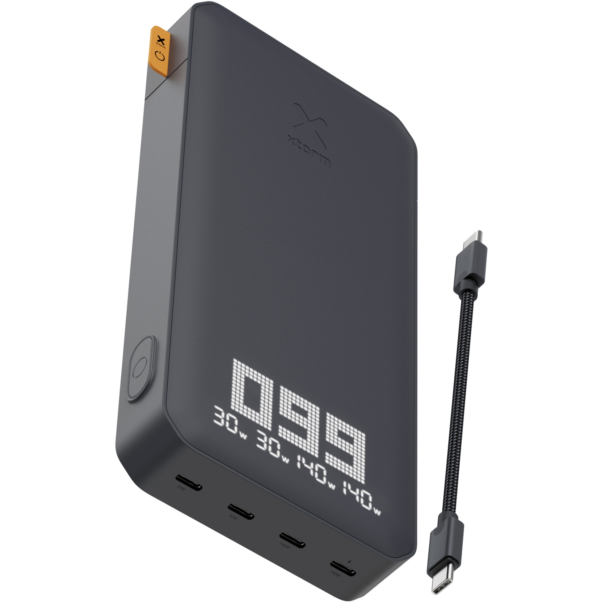 Suuren 27 000 mAh:n kapasiteetin ansiosta XB403 Titan Ultra -varavirtalähteellä voit helposti ladata USB-C-kannettavasi, MacBookin, tabletin, älypuhelimen tai e-lukijan nopeasti. Tämä varavirtalähde on XB4-sarjan tehokkain varavirtalähde 140 W:n USB-C-virransyötön teholla ja 200 W:n kokonaisteholla. Sisäänrakennetun 240 W USB-C PD -kaapelin ansiosta olet heti valmis lataamaan laitteesi milloin ja missä tahansa. Sopii lentokoneeseen. Voidaan ladata täyteen alle 1,5 tunnissa. Lähtö: 2 x USB-C 3.1 140 W:n virransyöttö, 2 x USB-C 30 W:n virransyöttö. Tulo: USB-C 140 W:n virransyöttö. Mukana toimitetaan sisäänrakennettu USB-C 240 W:n virransyöttökaapeli ja käyttöohje.