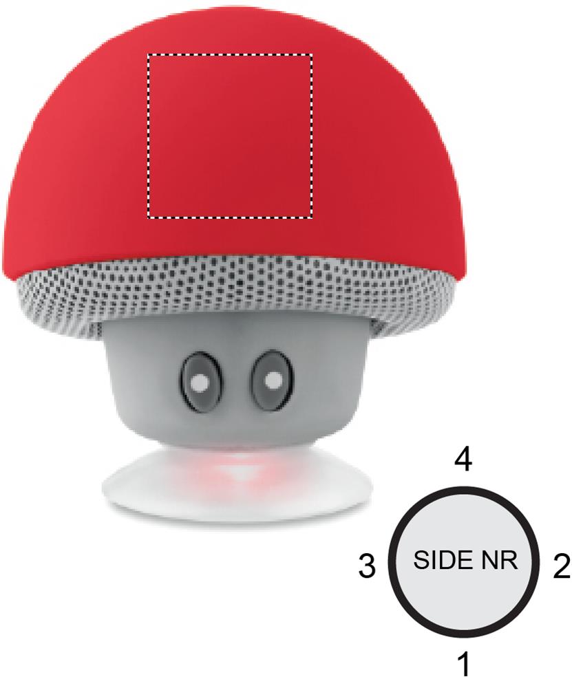 Grybuko formos 5.0 belaidis garsiakalbis/telefono stovas iš ABS su siurbtuku. Komplekte 1 įkraunama ličio 180 mAh baterija. Su USB įkrovimo laidu ir 3,5 mm kištuku. Išėjimo duomenys: 4 Ohm, 5V ir 3W. Žaidimo laikas apytiksl. 2h.