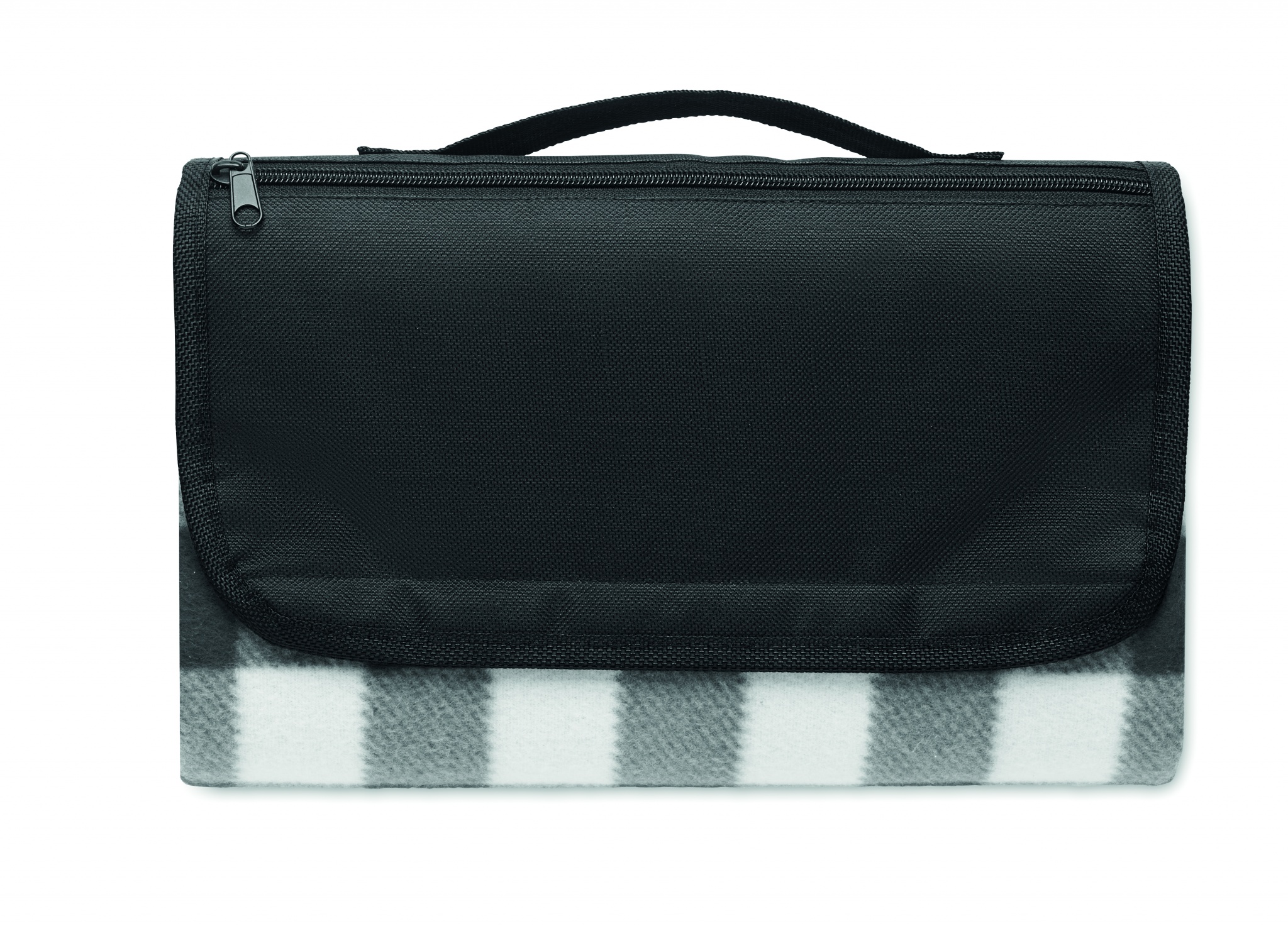 Sulankstoma RPET 150 gr/m² poliarinė vilnos antklodė iškylai su vandeniui atsparia PEVA danga. Yra priekinė kišenė su užtrauktuku ir trumpas nešiojimo dirželis.
