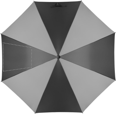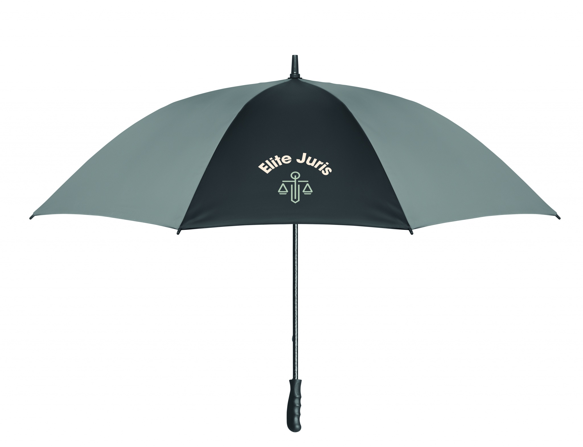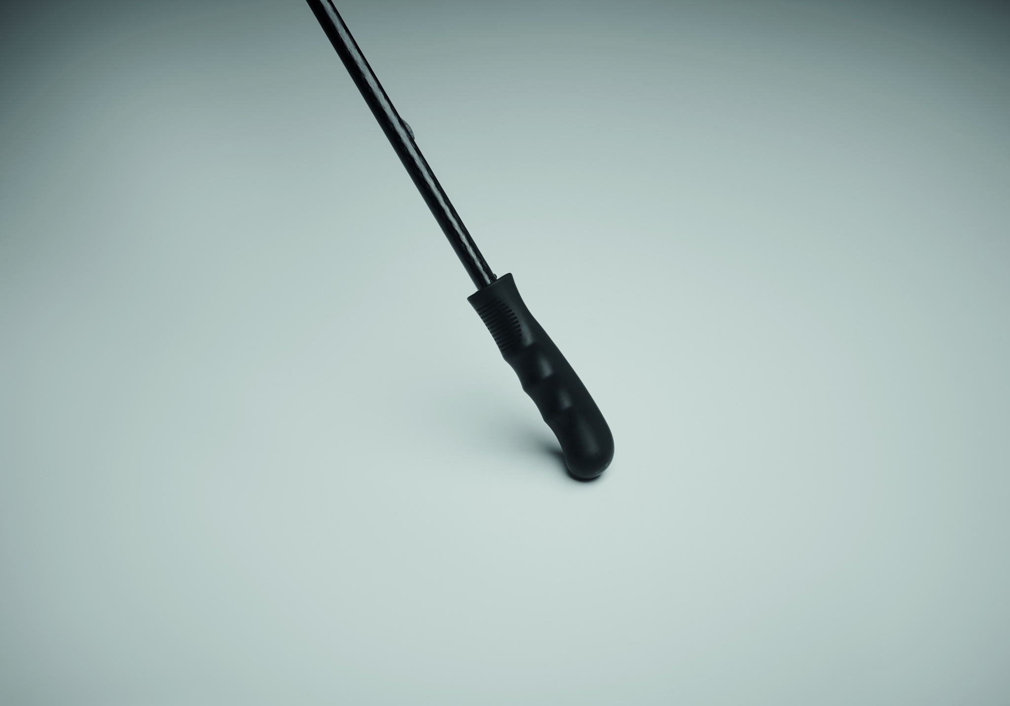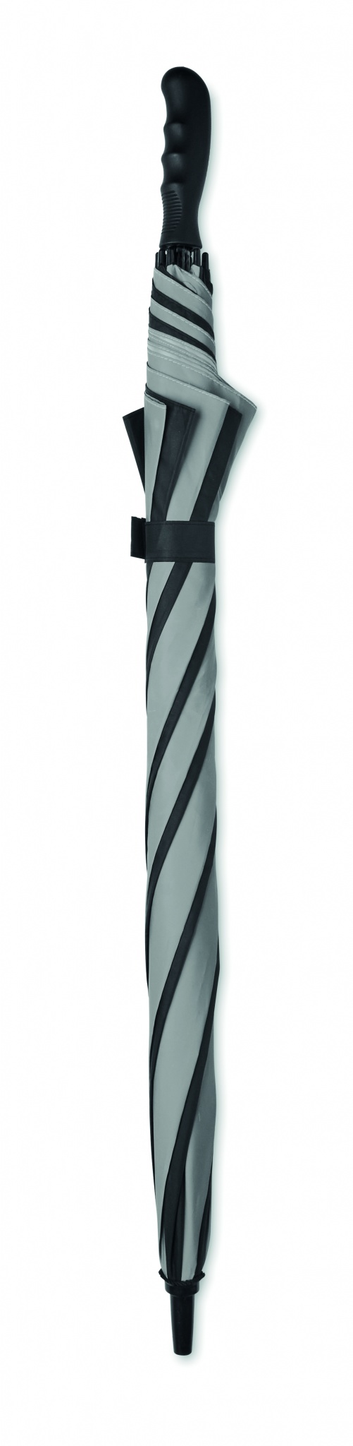 30 collu manuāli atverams vēja necaurlaidīgs lietussargs 190T pongee (4 paneļi) un atstarojošs materiāls (4 paneļi) ar stiklplasta rāmi, ribām un kātu. Taisns ABS rokturis ar gumijas apdari. Manuāla aizvēršana.