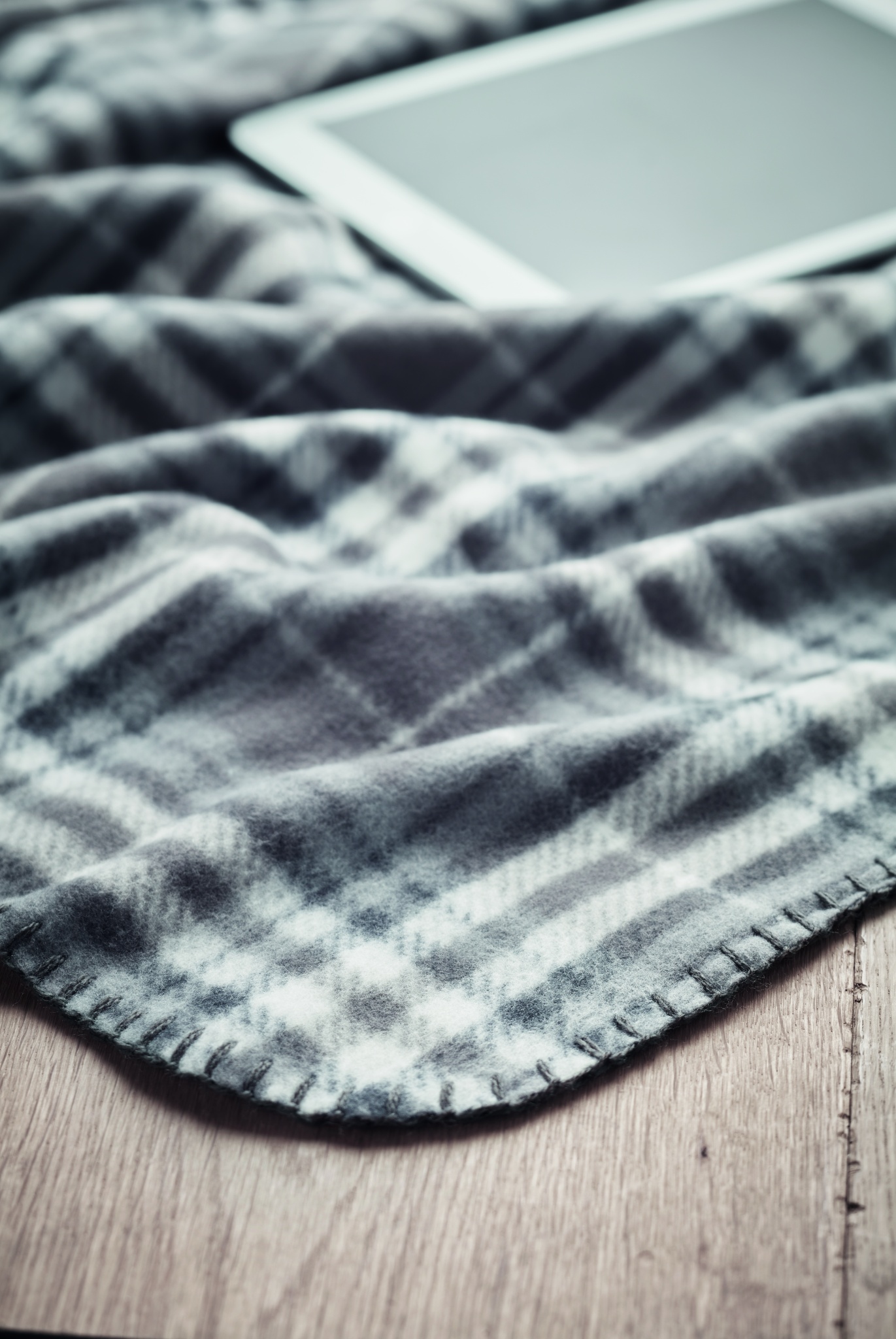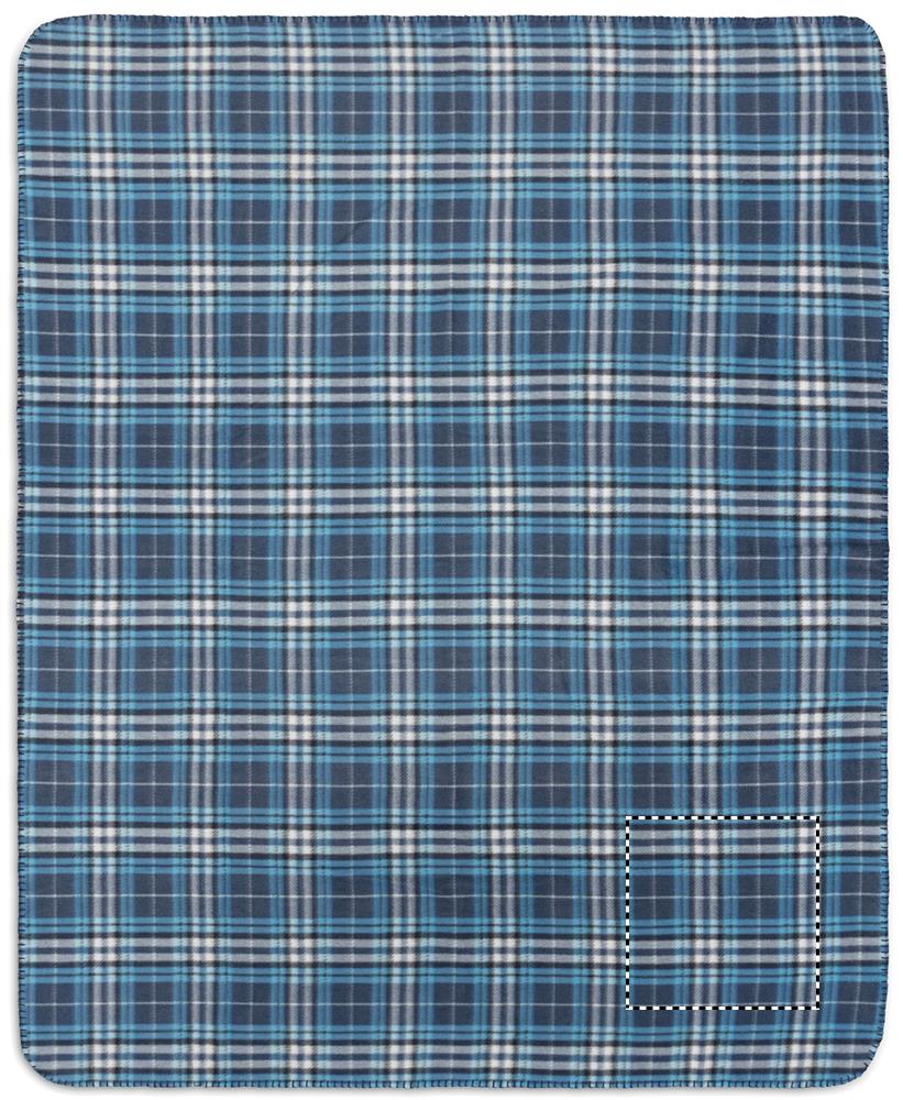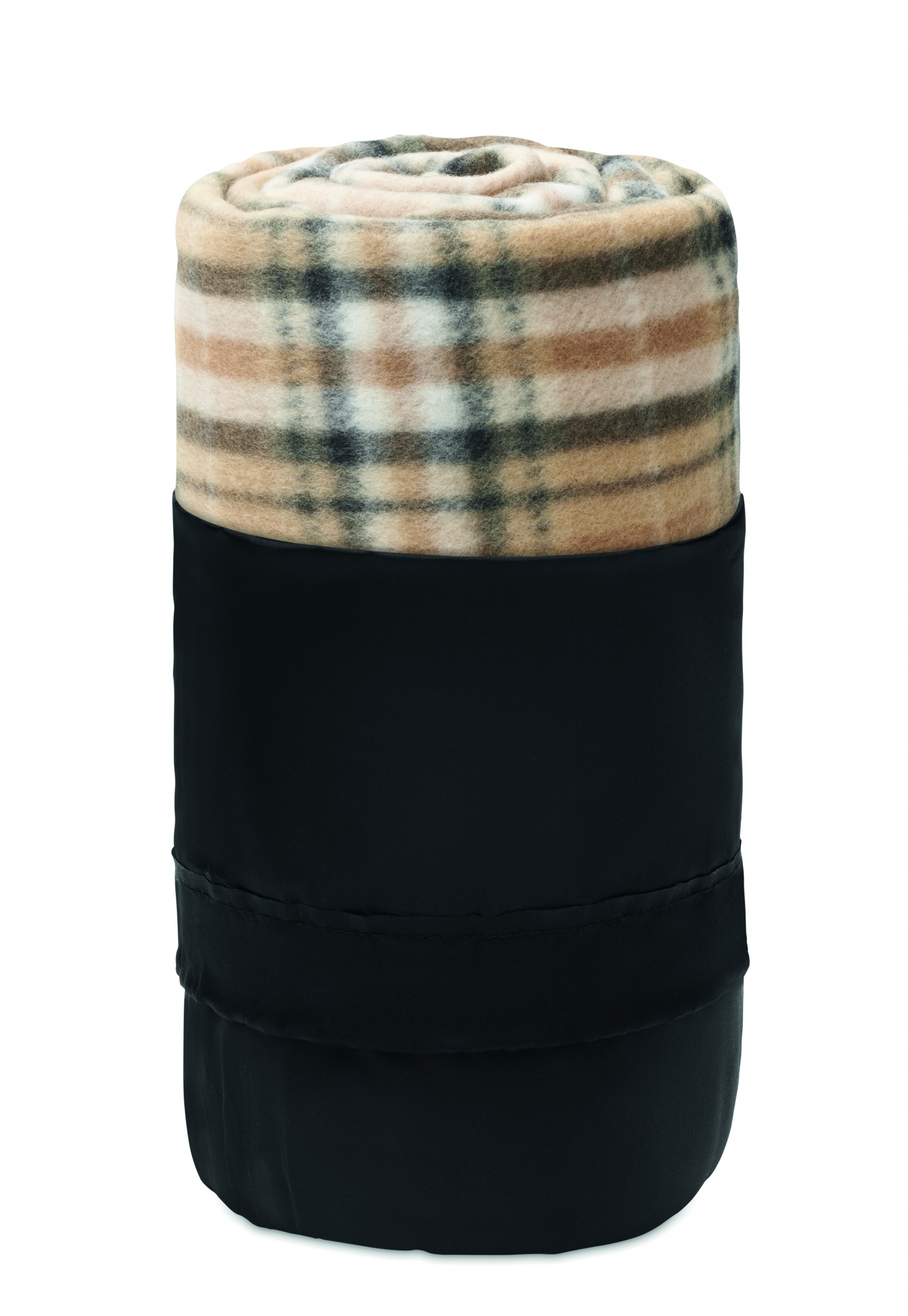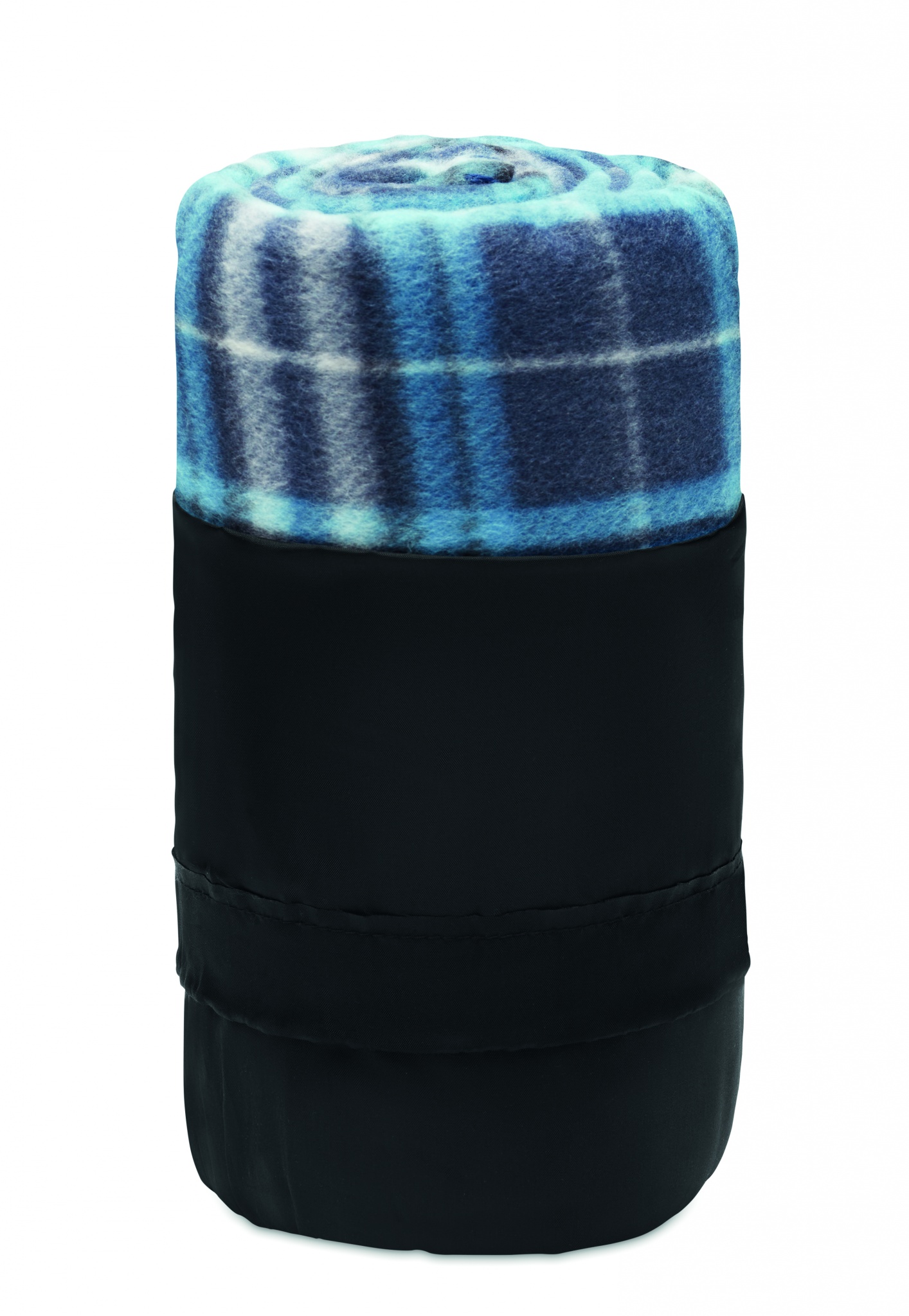 Flīsa sega ar kvadrātveida rakstu no RPET ar RPET poliestera ceļojumu maciņu. 180 gr/m² flīss.