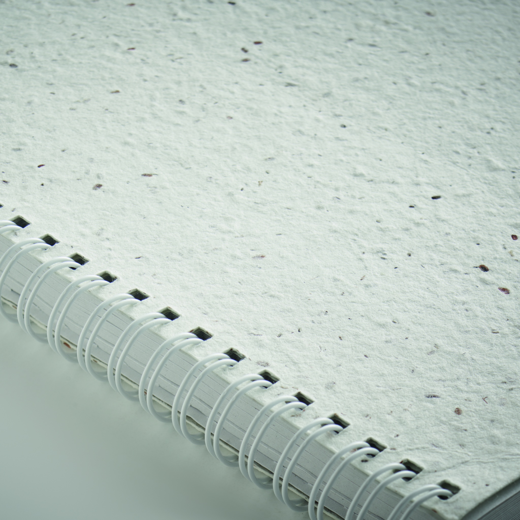 Блокнот A5 с обложкой из посевной бумаги. Двойная проволока. 200 линованных страниц из переработанной бумаги (100 листов).