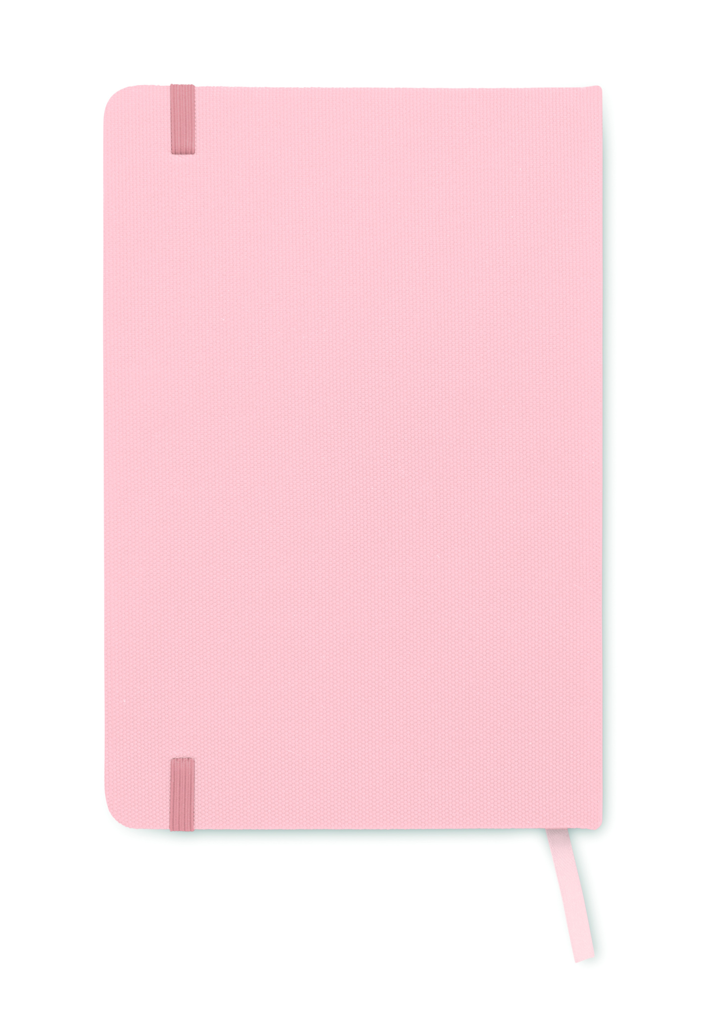 Блокнот A5 с обложкой из RPET 600D. Блок на 80 линованных страниц из переработанной бумаги с резинкой и закладкой.