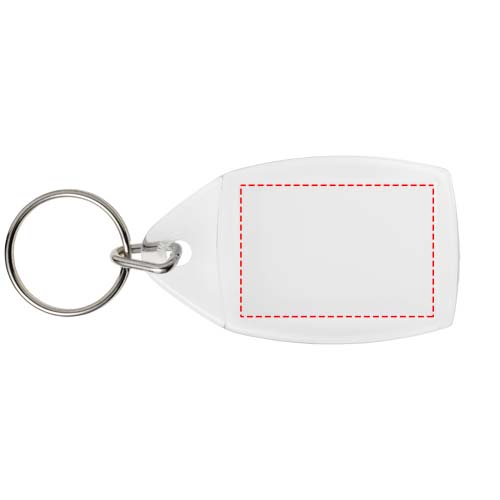 Прозрачный брелок с металлическим разъемным кольцом. Металлическая петля для крепления кольца представляет собой плоский профиль, что делает его идеальным для пересылки. Размеры печатной вставки: 3,5 см x 2,4 см.
