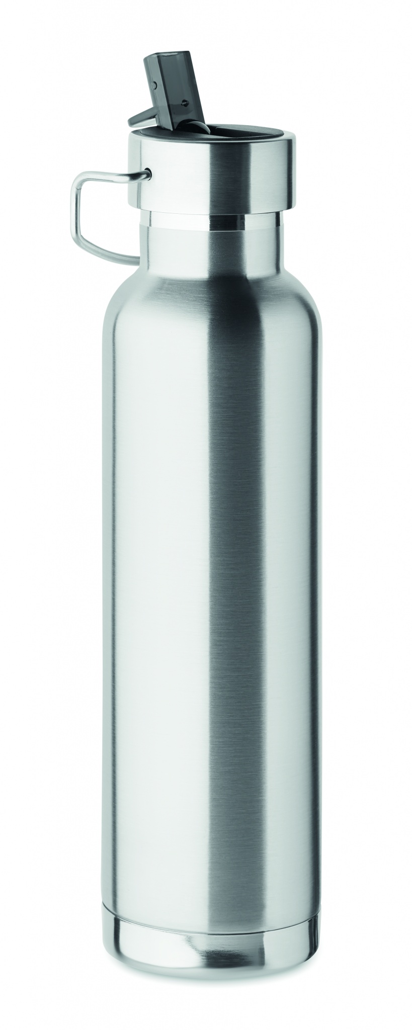 Бутылка с двойными стенками из переработанной нержавеющей стали (90%) и обычной нержавеющей стали (10%) со встроенной соломинкой и крышкой с ручкой. Герметична. Объем: 660 мл.