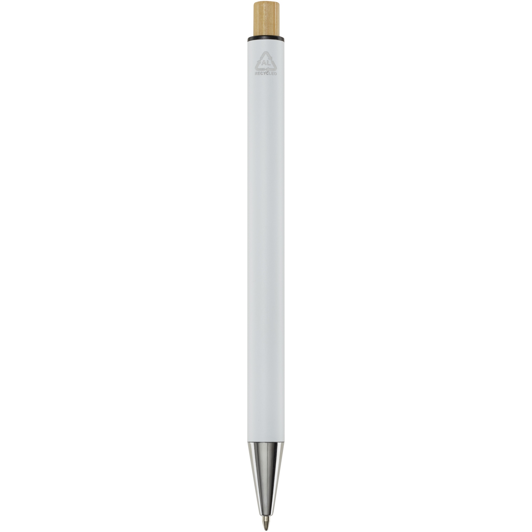 Шариковая ручка Cyrus изготовлена из переработанного алюминия, что требует меньше энергии, чем производство алюминия из сырья. Это также уменьшает количество отходов на свалках и помогает сохранять природные ресурсы для сокращения выбросов парниковых газов. Нажимная кнопка изготовлена из бамбука. Цвет чернил: синий. Длина непрерывной линии: 800 метров. Размер пера: 1,00 мм.