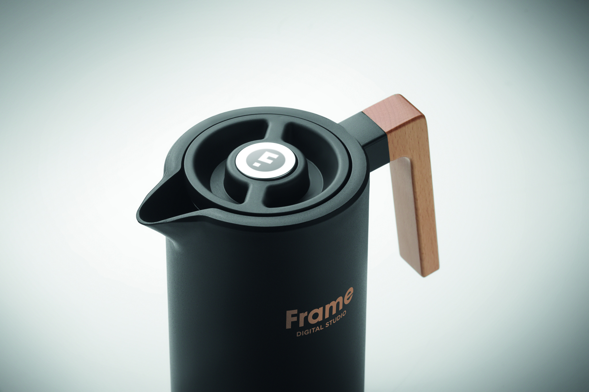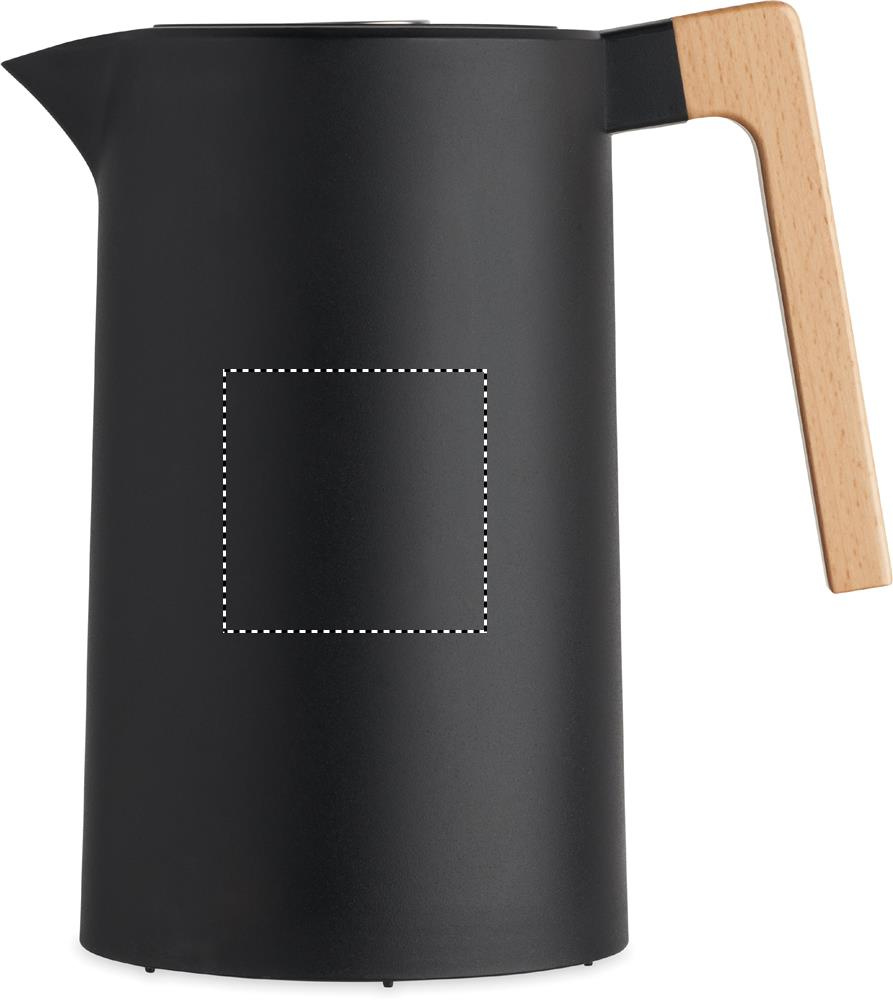 Double wall insulated vacuum jug recycled stainless steel (90% recycled stainless steel and 10% stainless steel) inside and PP outside wall with wooden handle. Capacity: 1L.