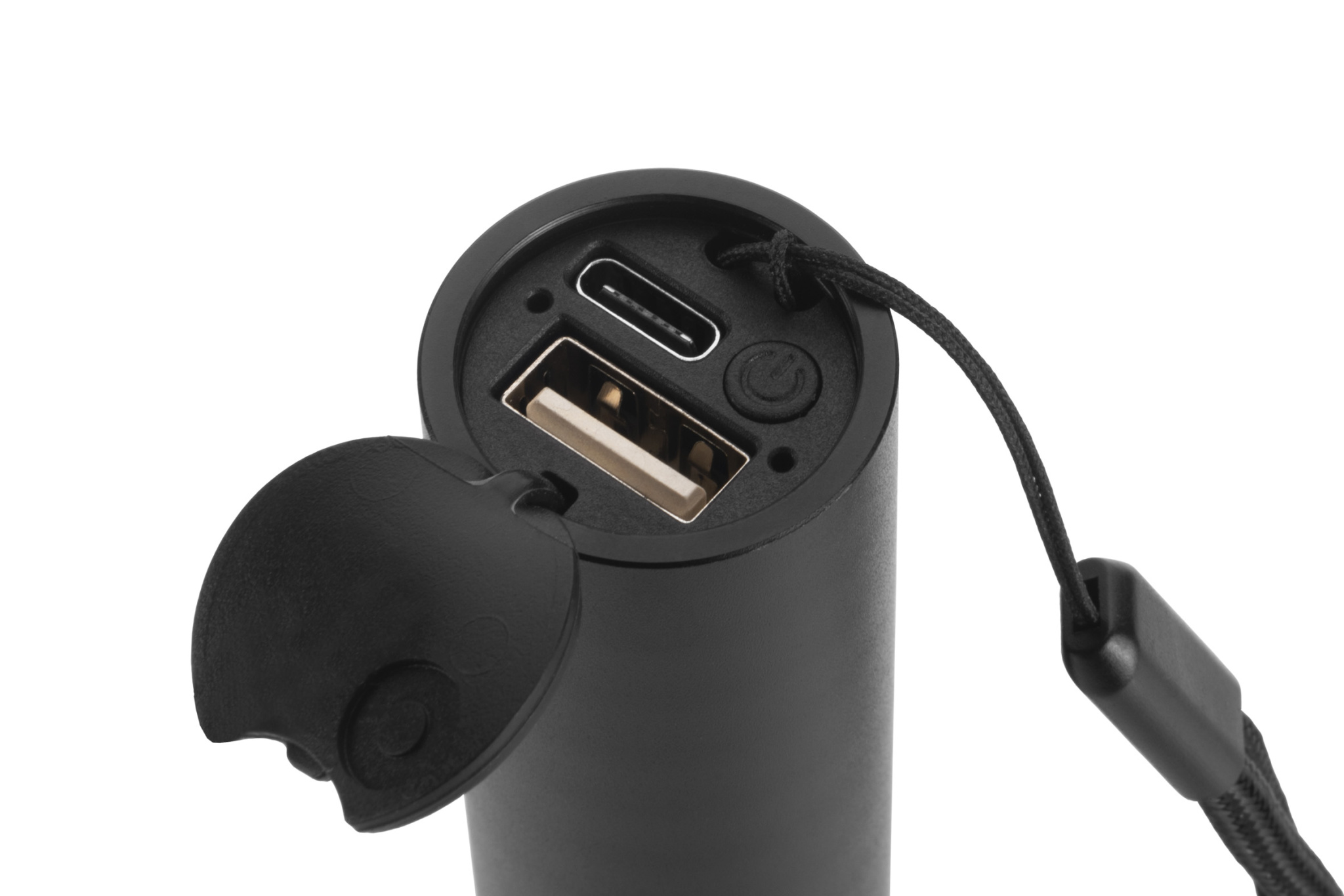 Перезаряжаемый фонарик Schwarzwolf с ремешком на запястье. Содержит 5 Вт XPG-диод. Имеет 3 режима освещения: яркий, мигающий и SOS. При длительном нажатии кнопки можно включить затемнение. Фонарик имеет возможность менять зум и включает индикатор зарядки. Поставляется с перезаряжаемой литиевой батареей 3,7 В емкостью 2000 мАч и кабелем USB-C для зарядки. Время зарядки батареи составляет 3 часа, время разрядки — 3,5 часа.