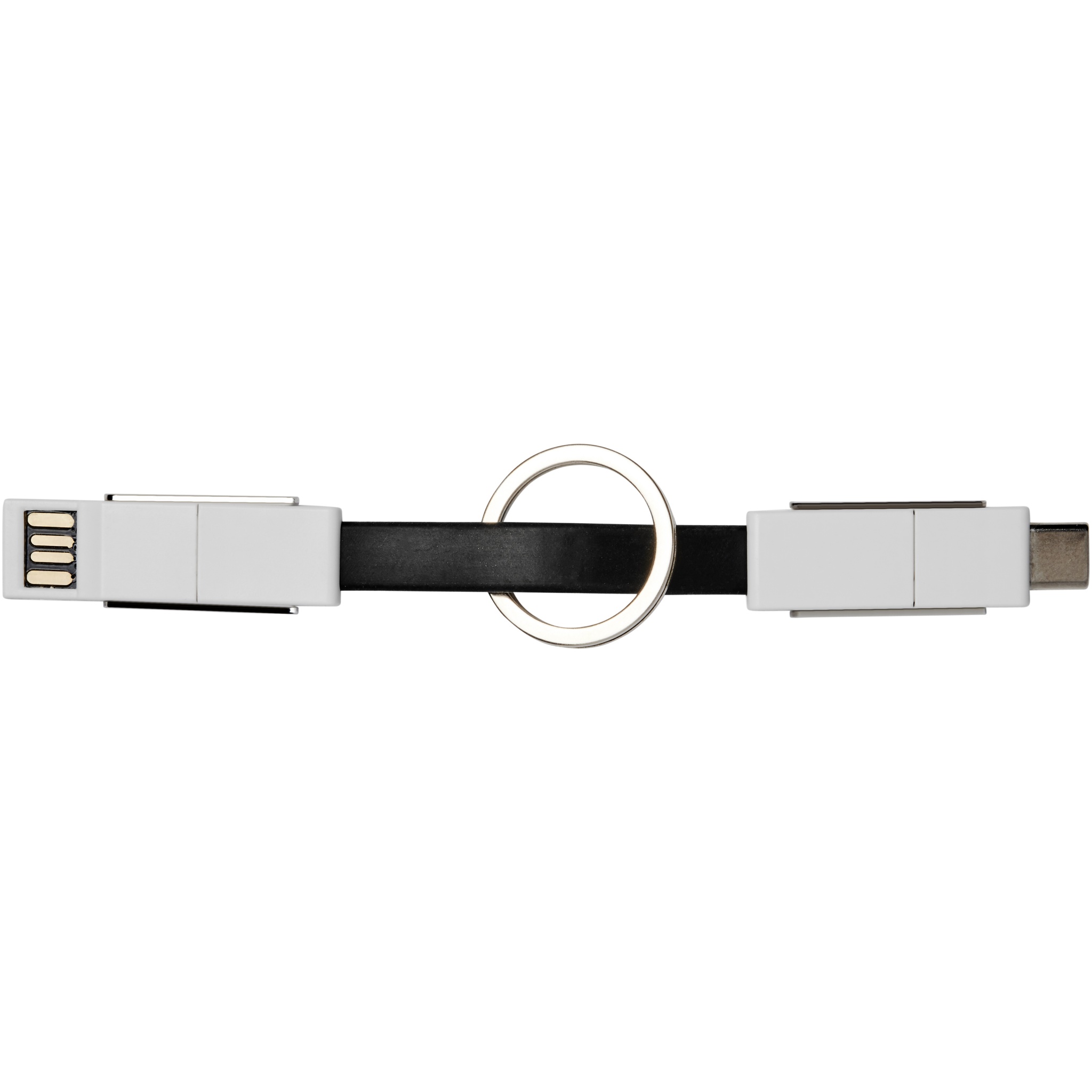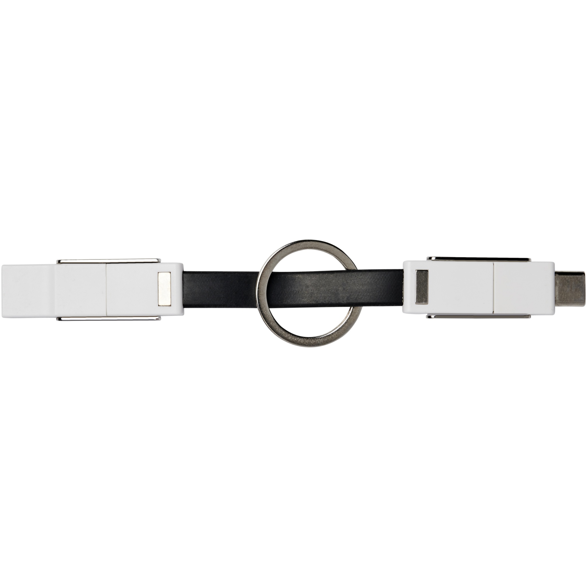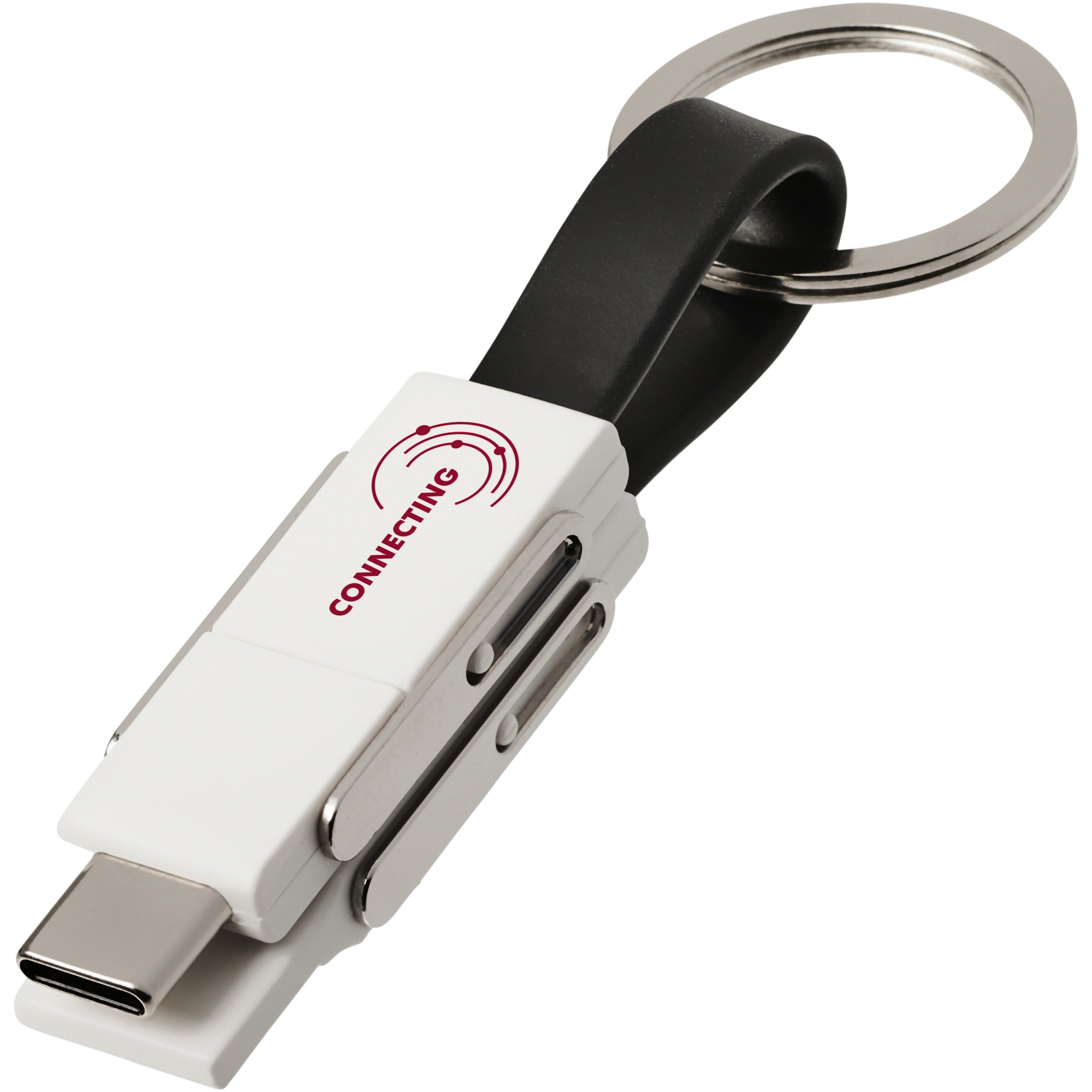 Кабель "4 в 1" позволяет заряжать любые устройства. Он оснащен разъемами USB Type A, Type-C и наконечником "2 в 1", совместимым как с устройствами iOS, так и с устройствами Android. Может использоваться как для зарядки, так и для передачи данных. Кабель оснащен брелоком и магнитами, обеспечивающими удобную переноску.