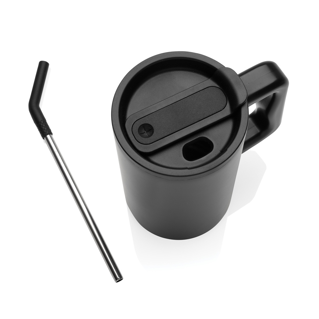 Побалуйте себя прочными объятиями нашей большой кружки объемом 800 мл — вместительной и идеально подходящей для вашего офисного стола. Ее прочная ручка и широкое основание делают ее идеальным компаньоном для ежедневного потребления воды в офисе. Изготовленная из прочной переработанной нержавеющей стали, эта кружка создана для удовлетворения ваших потребностей в гидратации. Эта увесистая, двухстенная, вакуумно-изолированная кружка оснащена надежной крышкой, соломинкой и силиконовым наконечником для соломинки. Достаточно универсальная для подачи как горячих, так и ледяных напитков, завинчивающаяся крышка предлагает двойную функцию — удобный носик для питья или возможность использовать соломинку. Для оптимального ухода мы рекомендуем мыть эту вместительную кружку вручную