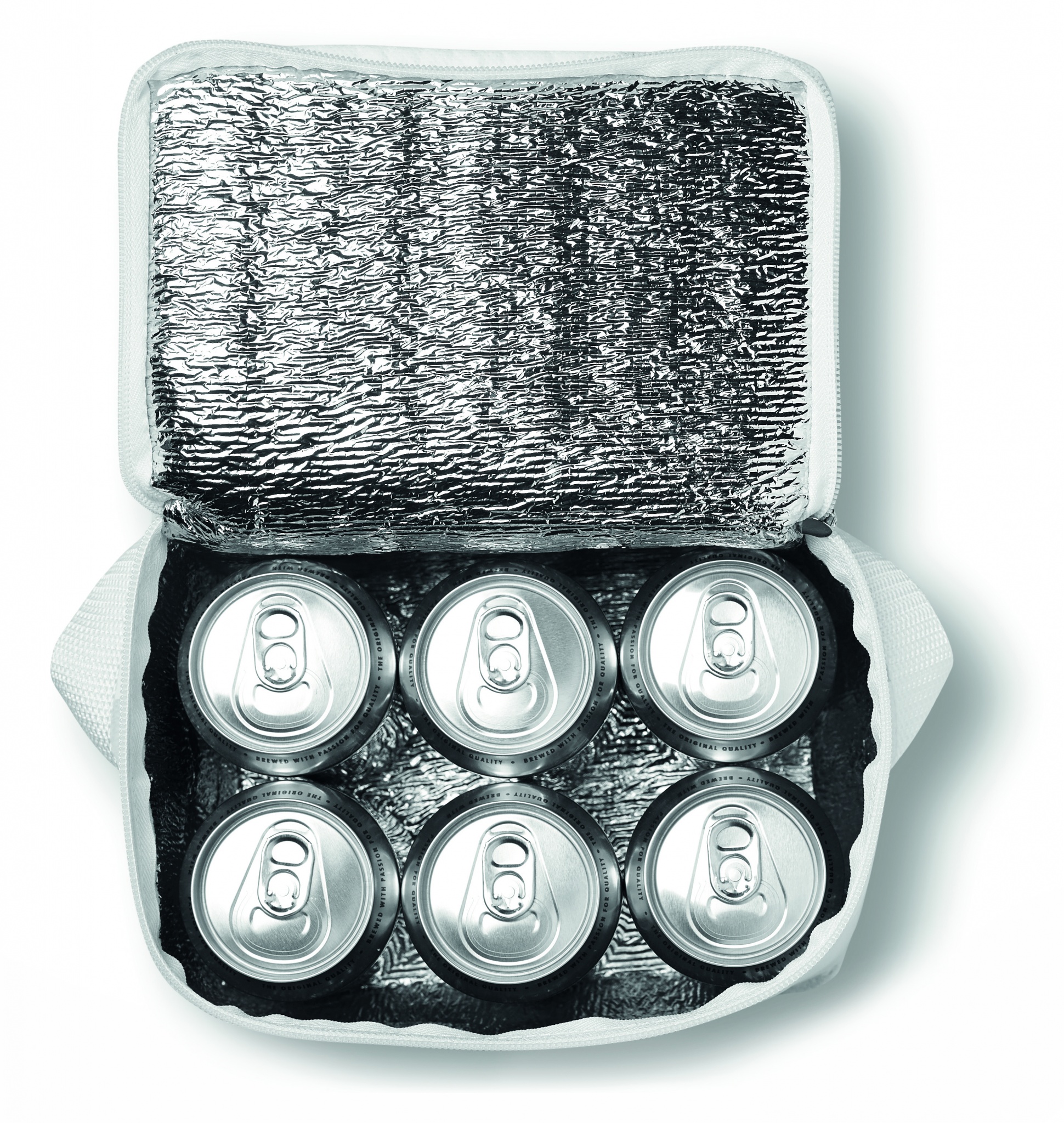 Сумка-кулер для шести жестяных банок из полиэстера.