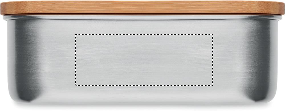 Ланч-бокс из нержавеющей стали с бамбуковой крышкой и 2 столовыми приборами с фиксируемой лентой из полиэстера. Емкость 600мл. Так как бамбук является натуральным материалом, у отдельных изделий могут быть небольшие различия в цвете и размере