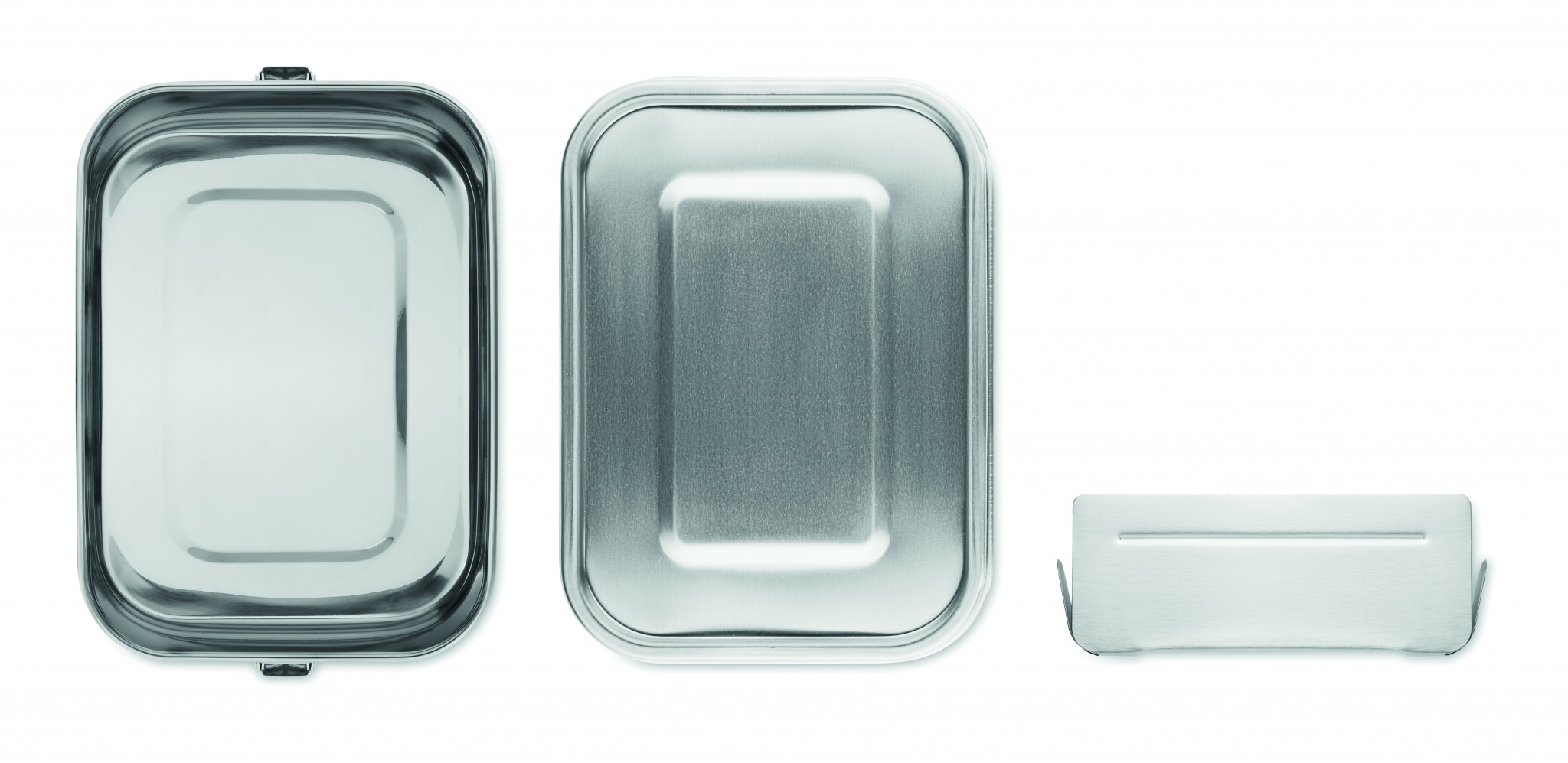 Ланч-бокс из нержавеющей стали с прочными и надежными боковыми застежками. Включает внутренний разделитель. Вместимость: 1200 мл.