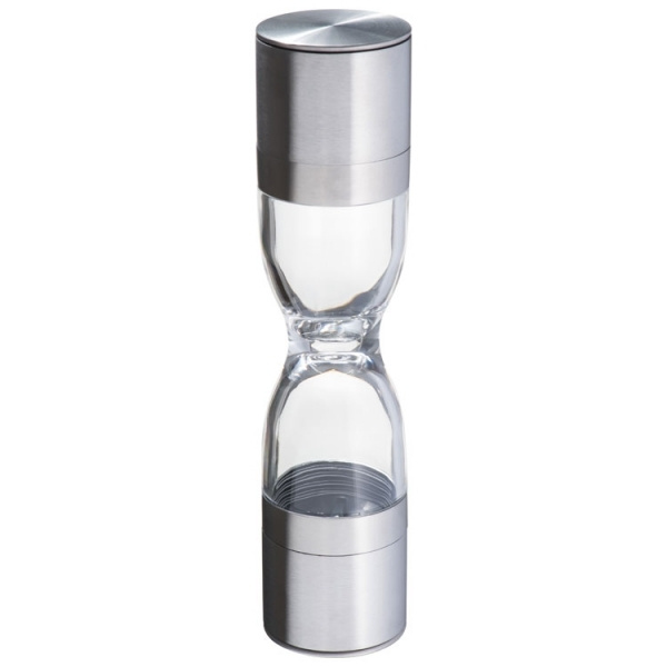 Добавьте остроты! Добавьте остроты в отношения с клиентами с помощью этой прекрасной мельницы для соли и перца 2 в 1. Мельница из нержавеющей стали и пластика оснащена двумя регулируемыми керамическими жерновами. Грубая соль и свежий перец легко измельчаются. Мы выгравируем ваш логотип по центру на одной из крышек из нержавеющей стали с одной стороны. Упаковано по отдельности в коробке.