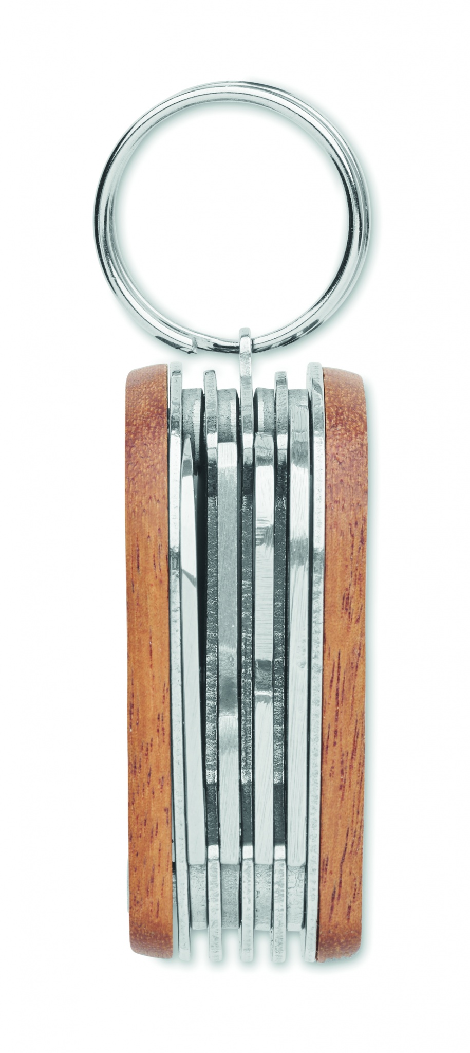 Многофункциональный карманный нож из нержавеющей стали с деревянной ручкой из акации. 7 функций: открывалка для бутылок, нож, консервный нож, напильник, отвертка, брелок для ключей и светодиодный фонарь. В комплекте 3 батарейки.