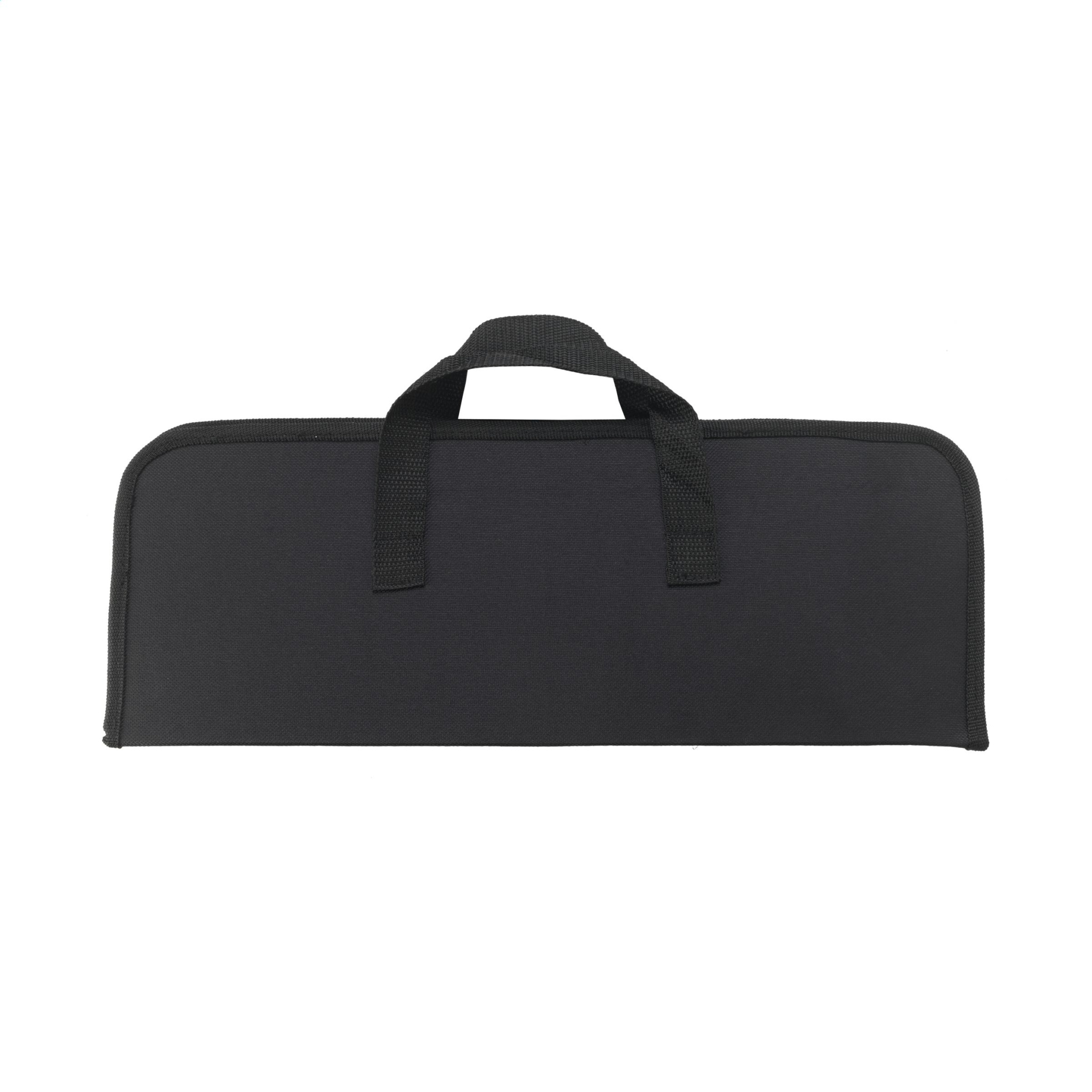 Набор для барбекю из 4 предметов: лопатка, вилка, нож и щипцы для мяса. Нержавеющая сталь имеет красивое черное покрытие, а ручки аксессуаров сделаны из акации. Этот шикарный набор поставляется в чехле из нейлона 600D.