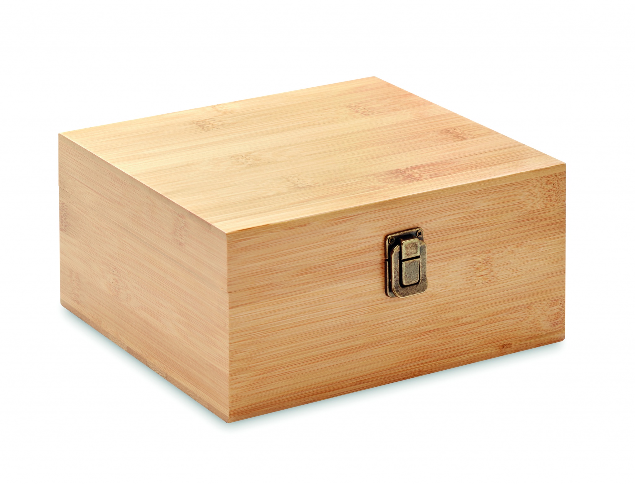 Роскошный набор бокалов для виски в бамбуковой подарочной коробке. Включает в себя 2 стакана (300 мл), 8 многоразовых каменных кубиков для охлаждения в хлопковом мешочке и щипцы. Так как бамбук является натуральным материалом, у отдельных изделий могут быть небольшие различия в цвете и размере