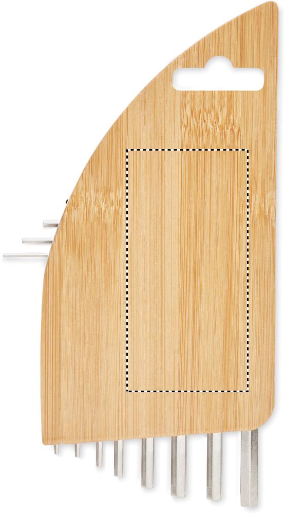 Набор шестигранных гаечных ключей в бамбуковом держателе. Включает ключи из углеродистой стали с никелевым покрытием следующих размеров: 1,5 мм - 2 мм - 2,5 мм - 3 мм - 4 мм - 5 мм - 5,5 мм - 6 мм.
