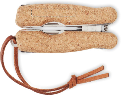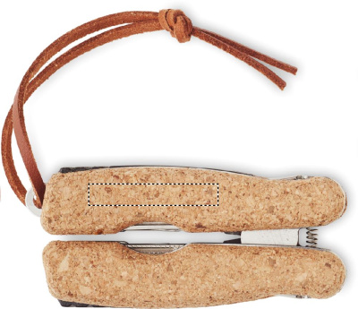 Многофункциональный карманный инструмент из нержавеющей стали с пробковым покрытием и полиуретановым шнурком. 9 функций. Включает: Плоскогубцы, 2 открывалки, отвертка с насадками Philips, пилка, нож, напильник и отвертка