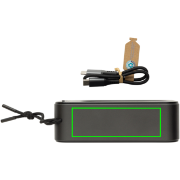 Акустическая система Swiss Peak RCS Recycled Aluminium 10 Вт обеспечивает мощное, высококачественное звучание с глубокими, резонансными басами благодаря встроенному сабвуферу и двум динамикам мощностью 5 Вт. Разработанная для исключительного звучания, она оснащена BT 5.3 для бесшовного подключения и автоматического сопряжения, гарантируя легкую настройку с вашими устройствами. Благодаря полимерному литий-ионному аккумулятору емкостью 1200 мАч колонка обеспечивает до 5 часов воспроизведения при 50% громкости и полностью заряжается всего за 2,5 часа с помощью входящего в комплект кабеля USB-C - USB-C. Дополнительные функции включают в себя порт USB-C и порт AUX. Колонка изготовлена из переработанного алюминия, сертифицированного RCS. RCS (Recycled Claim Standard) — это стандарт для проверки содержания переработанного продукта на протяжении всей цепочки поставок. Общее содержание переработанного материала: 40 % от общего веса изделия. Эта колонка не содержит ПВХ и упакована в подарочную коробку, сертифицированную FSC. С ремнем для переноски из RPET.