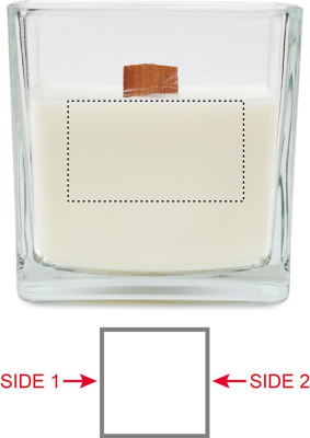 Large vanilla fragranced plant based wax candle 600gr in glass with wooden wick and beehive design on top. Burning time 65 hours
