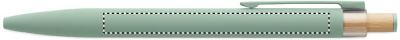 Recycled aluminium push ball pen with bamboo button with matching colour detail and matching metal clip. Blue ink.