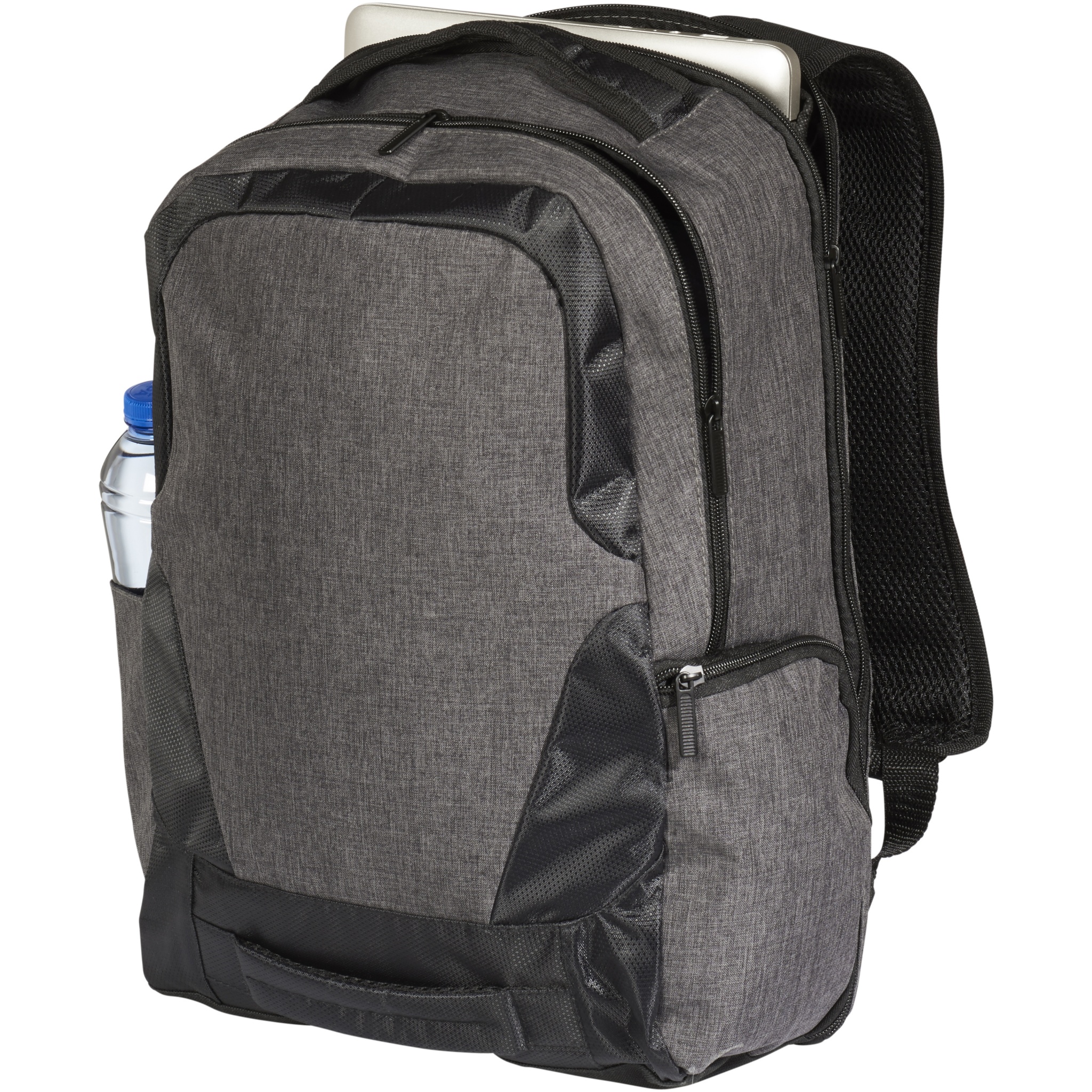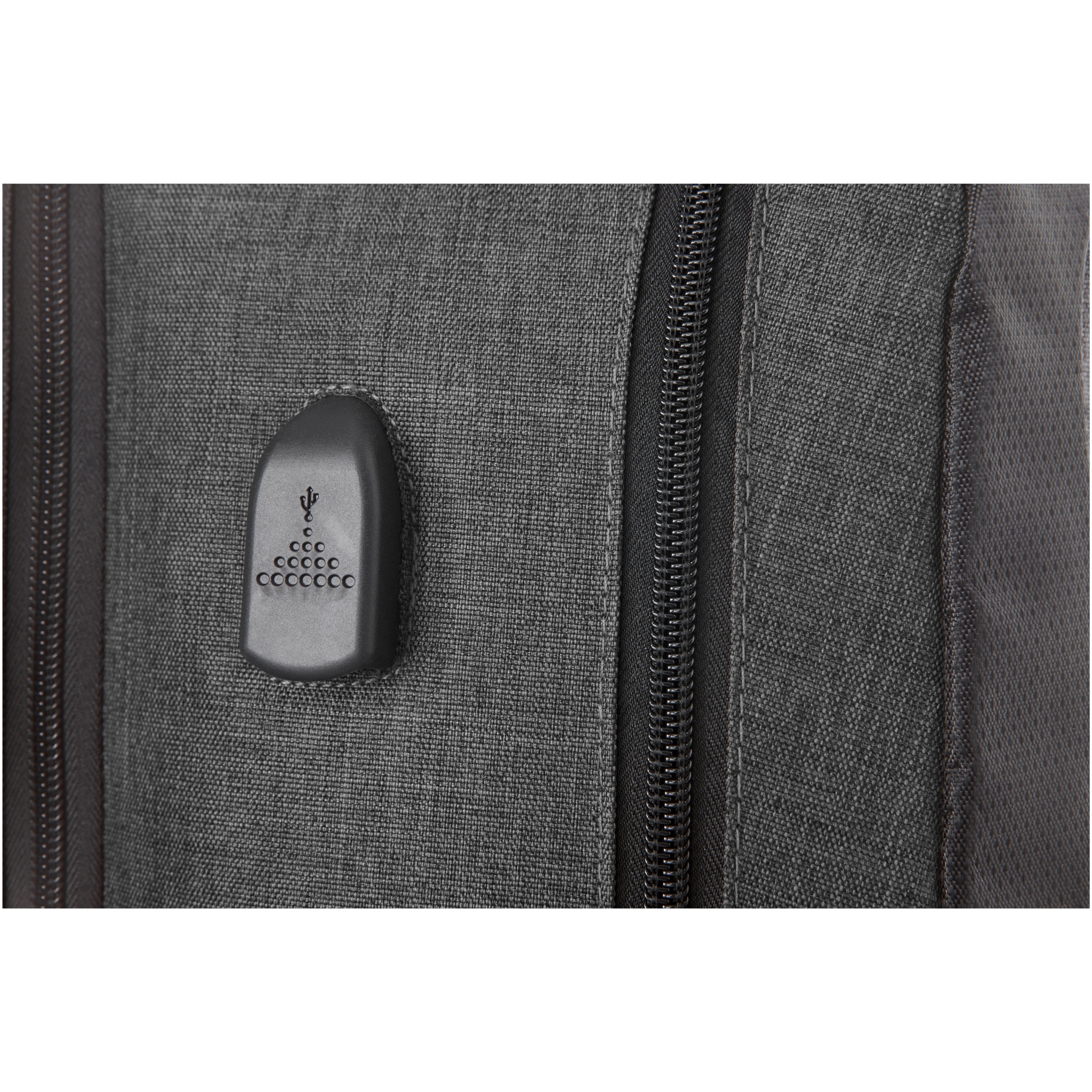 Тонкий рюкзак 17" для ноутбука с разъемом USB и кабелем. Оснащен RFID-защитой в боковом кармане, дополнительными карманами на молнии и ремнем для крепления к чемодану на колесах. Верхняя и передняя ручки и мягкие плечевые ремни удобны в использовании. Реальный цвет рюкзака может незначительно отличаться в зависимости от особенностей принта, окраски и структуры ткани.