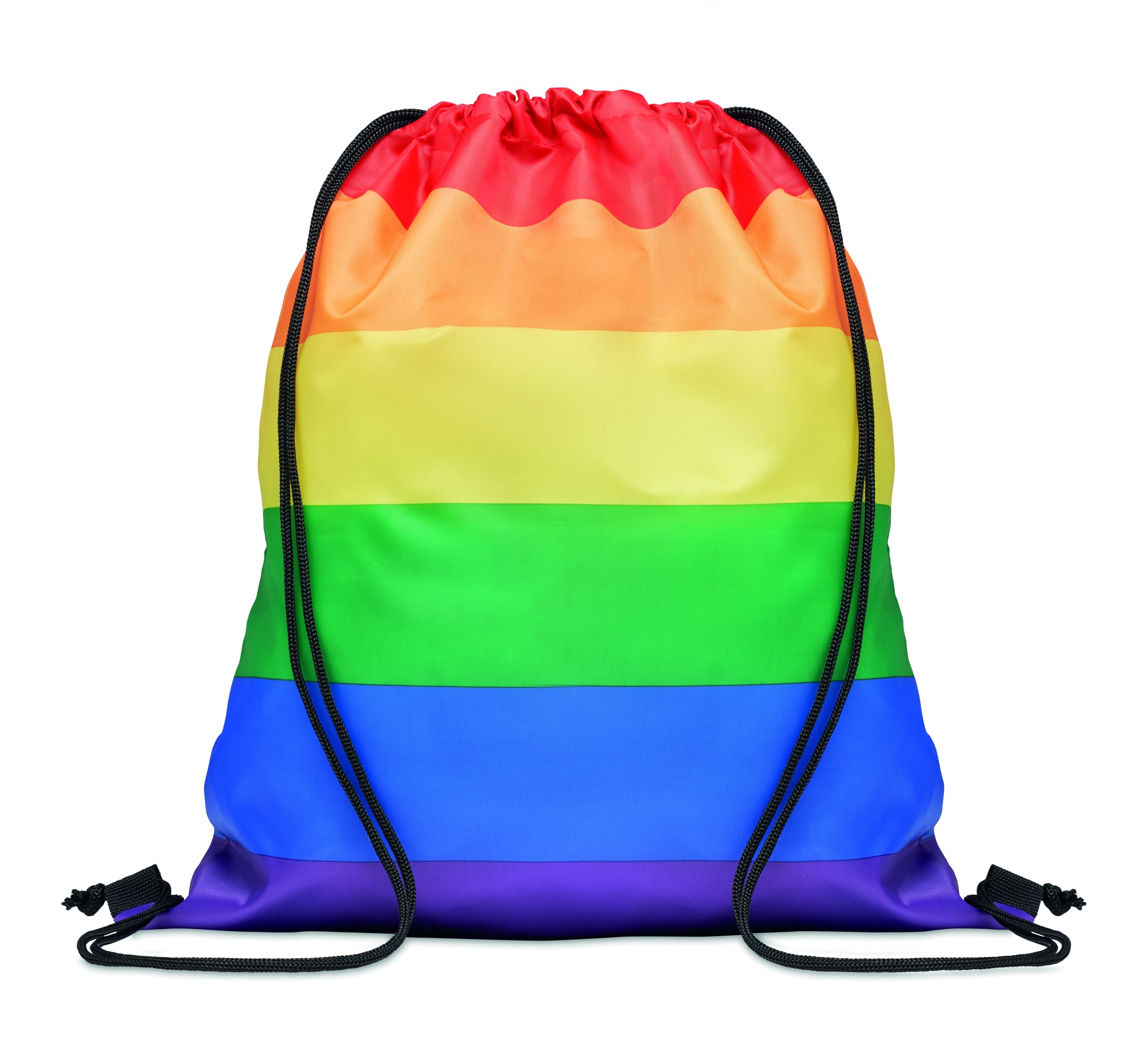 Рюкзак на шнурках в цветах радуги из полиэстера 210D RPET с полипропиленовыми нитками.