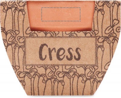 Небольшой глиняный терракотовый горшок с семенами салата и землей для проращивания. Изготовлено в ЕС.