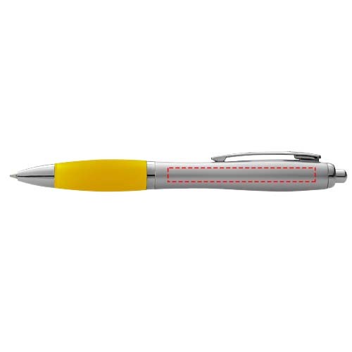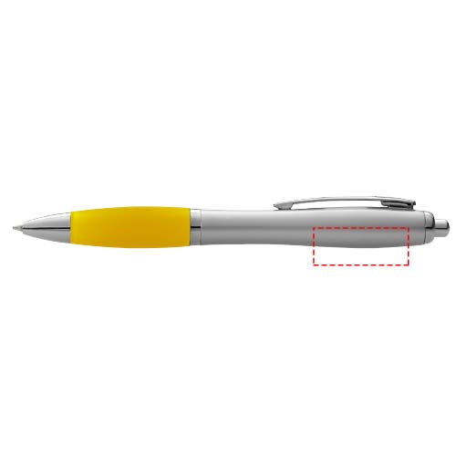 Шариковая ручка с кнопочным механизмом и мягким держателем.
