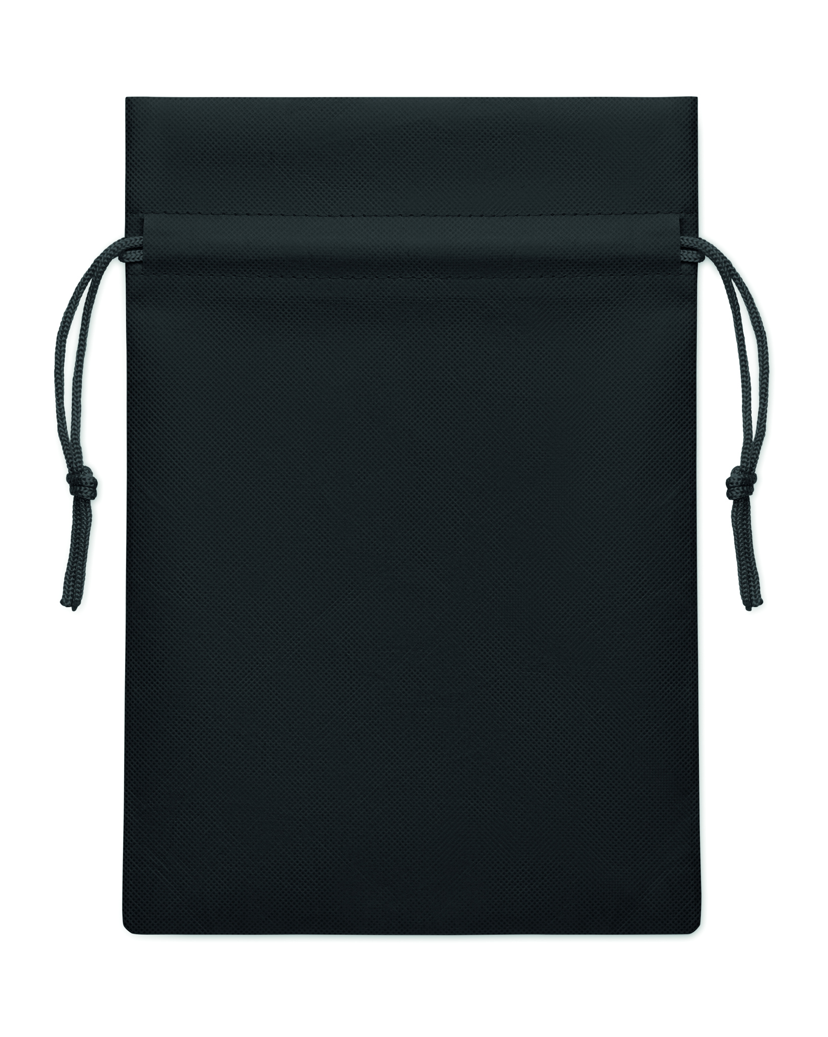 Small gift draw cord bag in RPET non-woven 80 gr/m². Size approx. 20x30 cm.