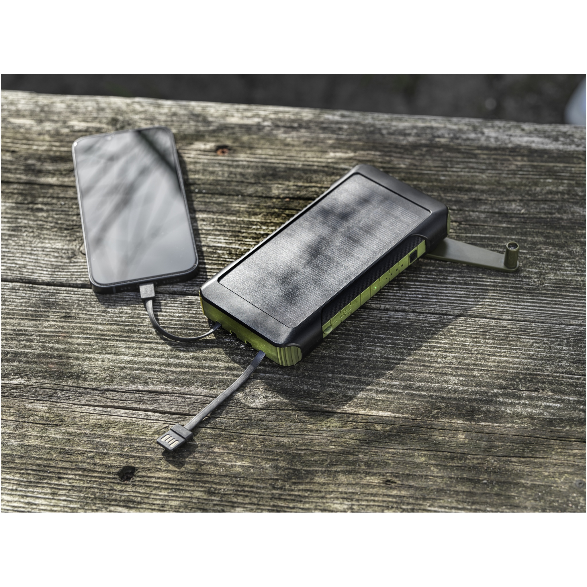 Soldy портативное зарядное устройство емкостью 10 000 мАч на солнечной батарее, с динамо-машиной, из переработанной пластмасс, Армейский зеленый