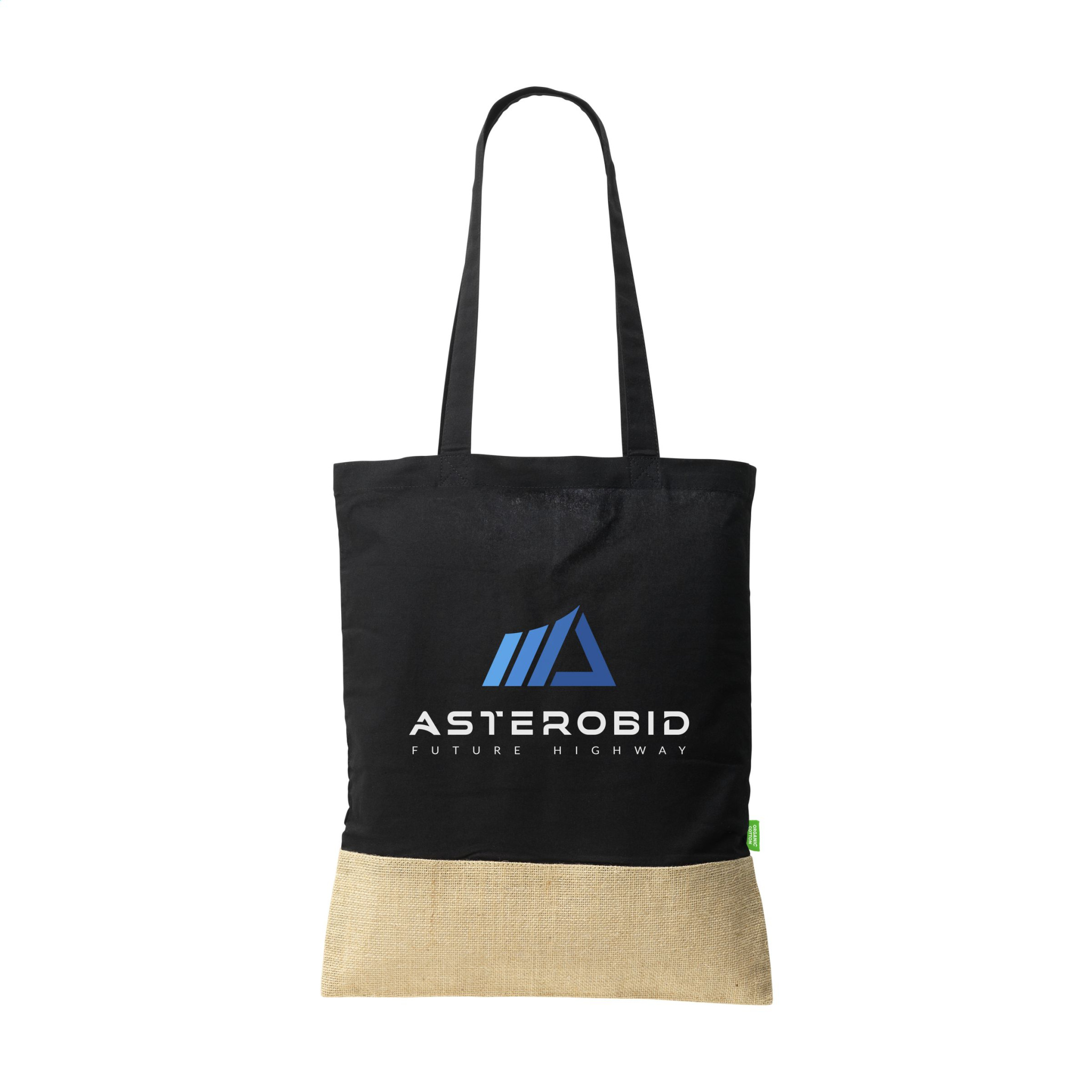 WoW! Прочная ЭКО-сумка для покупок из 100% органического хлопка (160 г/м²) в сочетании с жестким джутом. С длинными ручками. Объем около 8 литров.