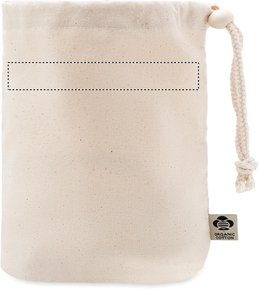 Небольшая сумка-мешок для аксессуаров из органического хлопка. 220 гр/м². Имеет внутренние сетчатые отделения и деревянную застежку.